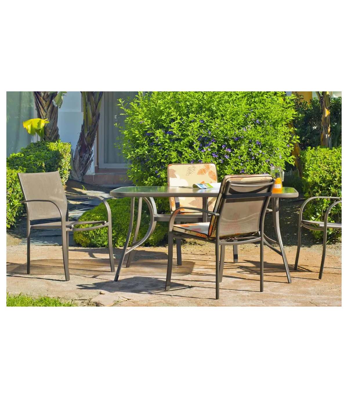 Mesa desmontable, para jardín y terraza, con tablero de cristal templado de seguridad.