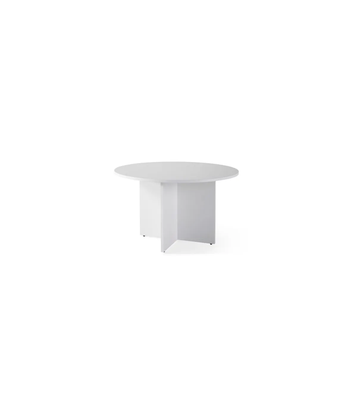 Mesa de reunión u oficina redonda con un toque de glamour perfecta para combinar con otros productos como aparadores o estanterías. Colores disponibles en blanco y olmo claro.
