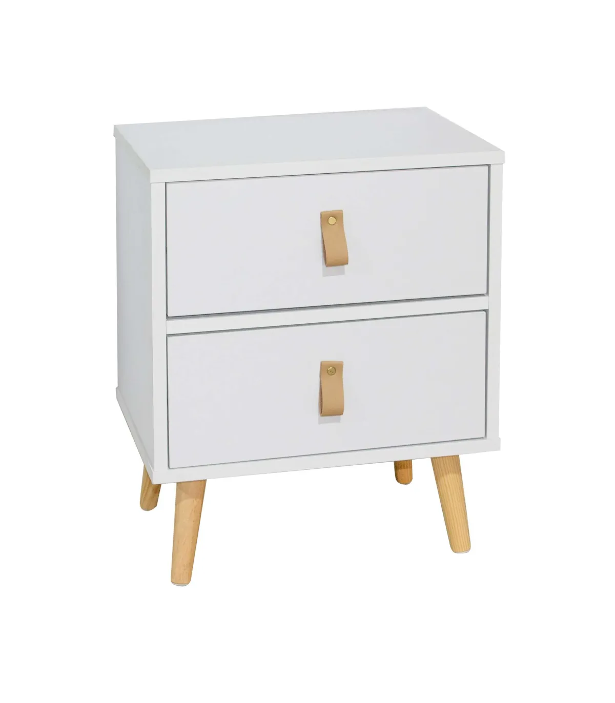 Organiza tu espacio con estilo gracias a la mesita de noche Md-Colomera · 2 cajones · acabado blanco · 50x40x30 cm.