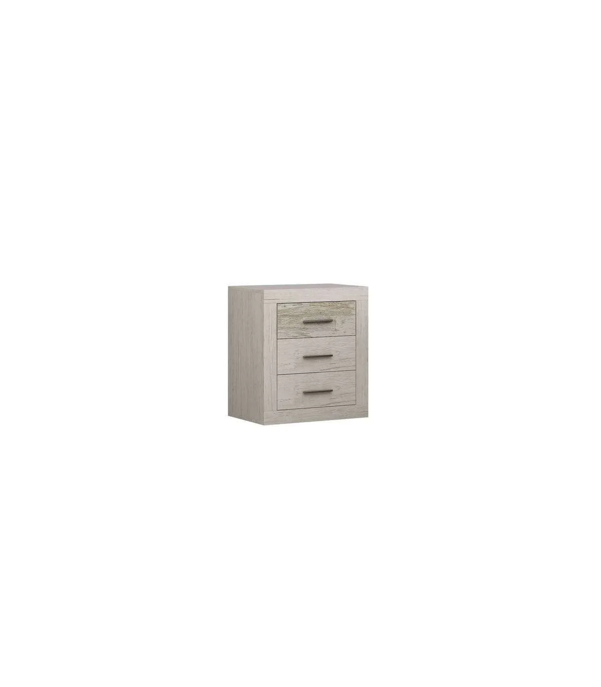 Mesita de noche con 3 cajones acabado artico vintage, 60cm(alto) 50cm(ancho) 34cm(fondo)