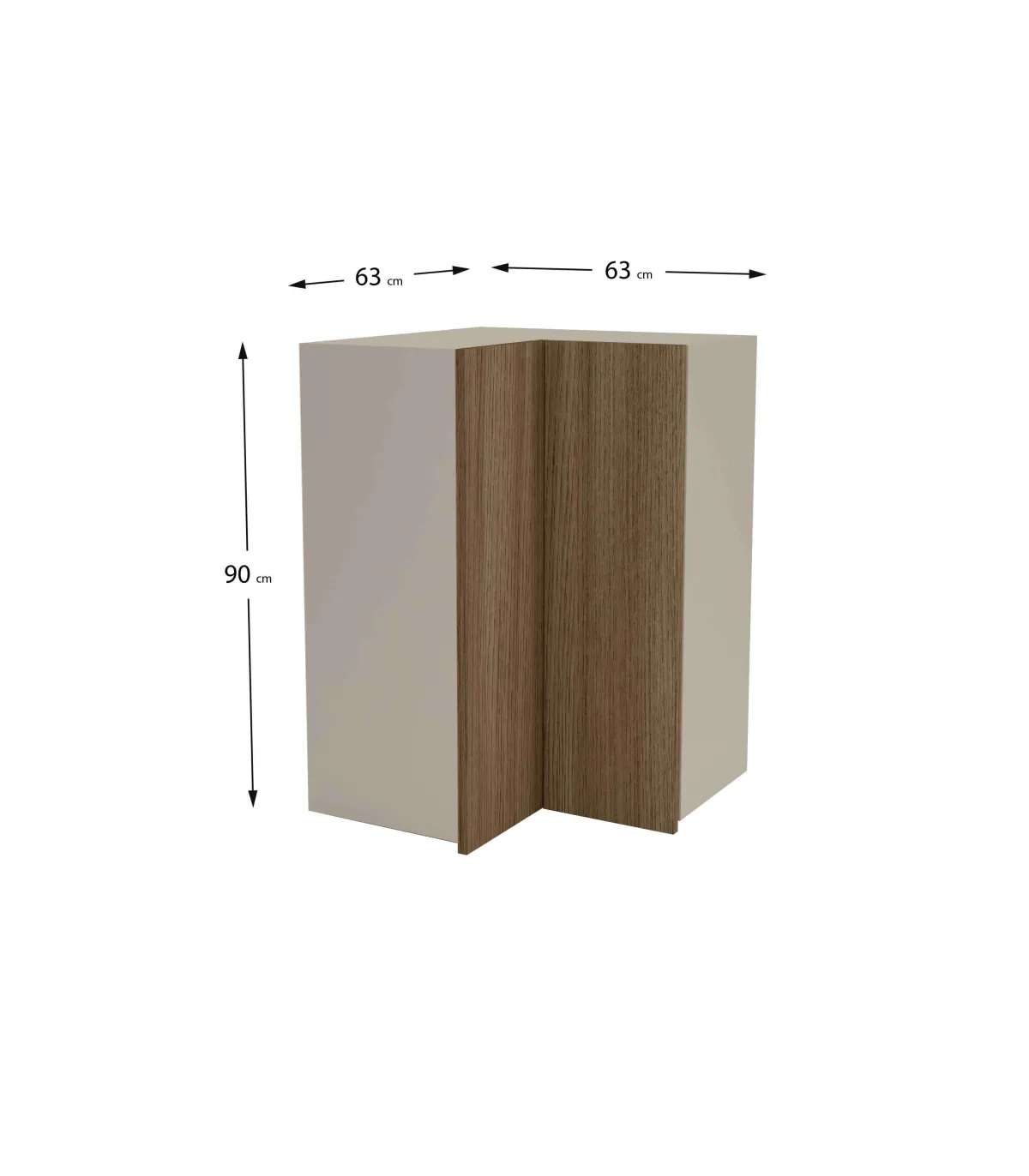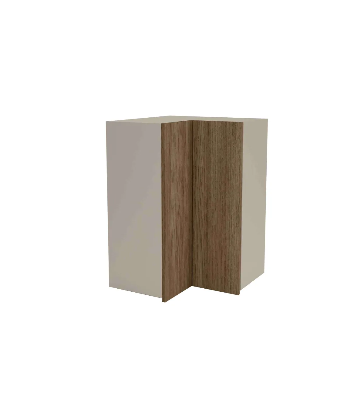 Mueble cocina alto de rincón de 63x63 cm, dos puertas de apertura tipo uñero y estantes regulables en altura. Casco en gris cream y puerta en nogal noceto.