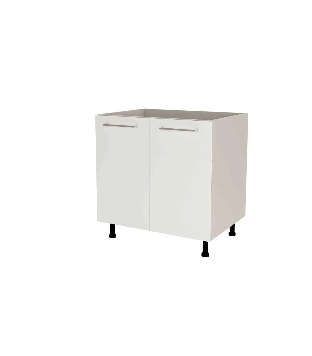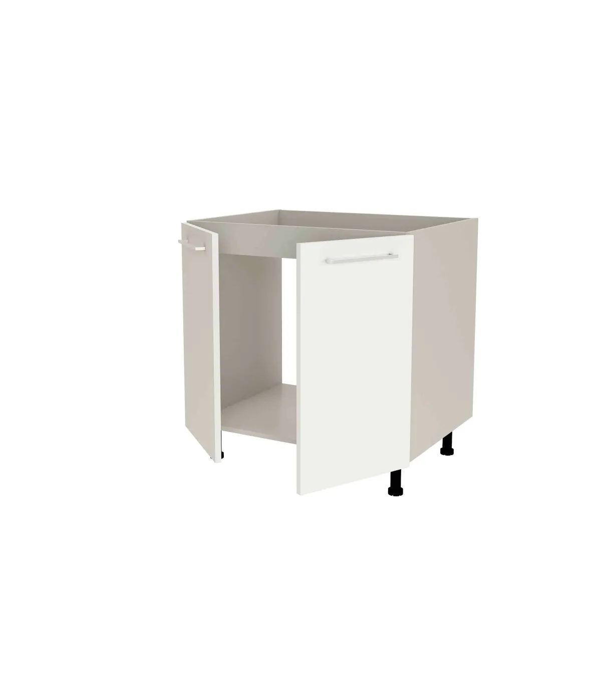 Mueble de cocina bajo para fregadero con 2 puertas. El casco es de color gris cream y las puertas en blanco mate.