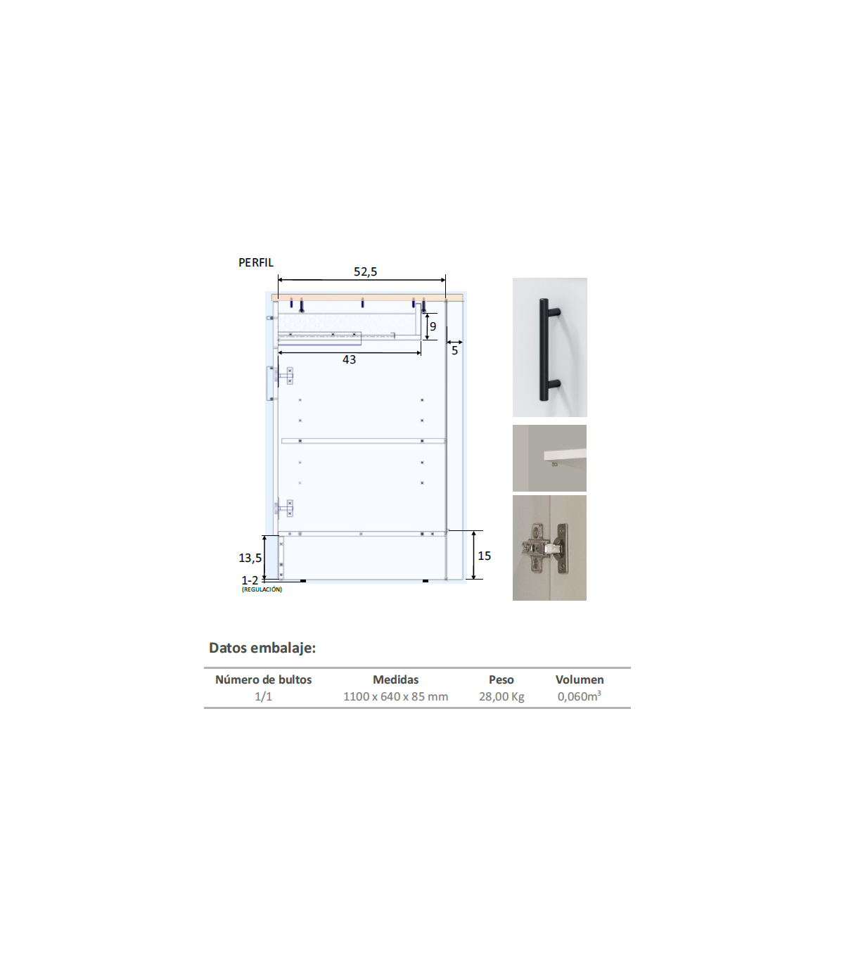 Capacidad cajón: 9cm (alto) x 35 cm (ancho) x 43 cm (prof.)