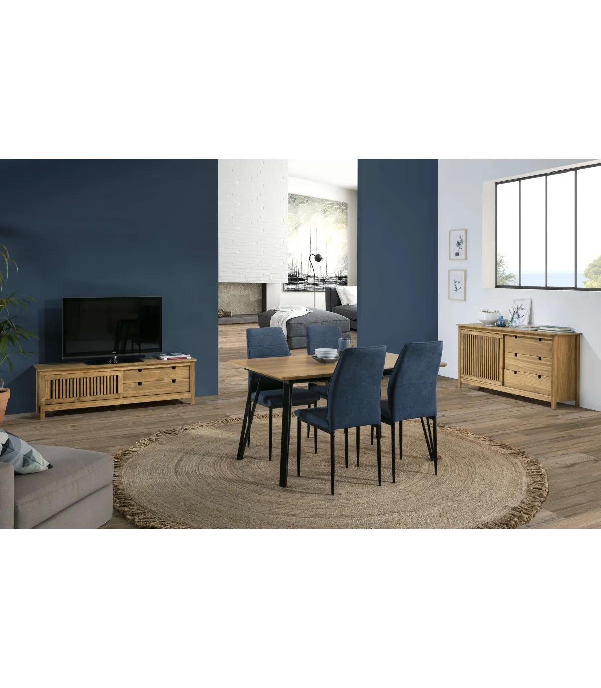 Con su diseño y detalles cuidadosamente pensados, el mueble para TV de la colección Luna combina la funcionalidad con la estética nórdica, convirtiéndose en una elección perfecta para complementar la decoración de tu hogar. Es una pieza versátil y atractiva que te permite disfrutar de tus momentos de entretenimiento con comodidad y estilo, al tiempo que mantiene tus dispositivos y cables organizados de manera eficiente.
