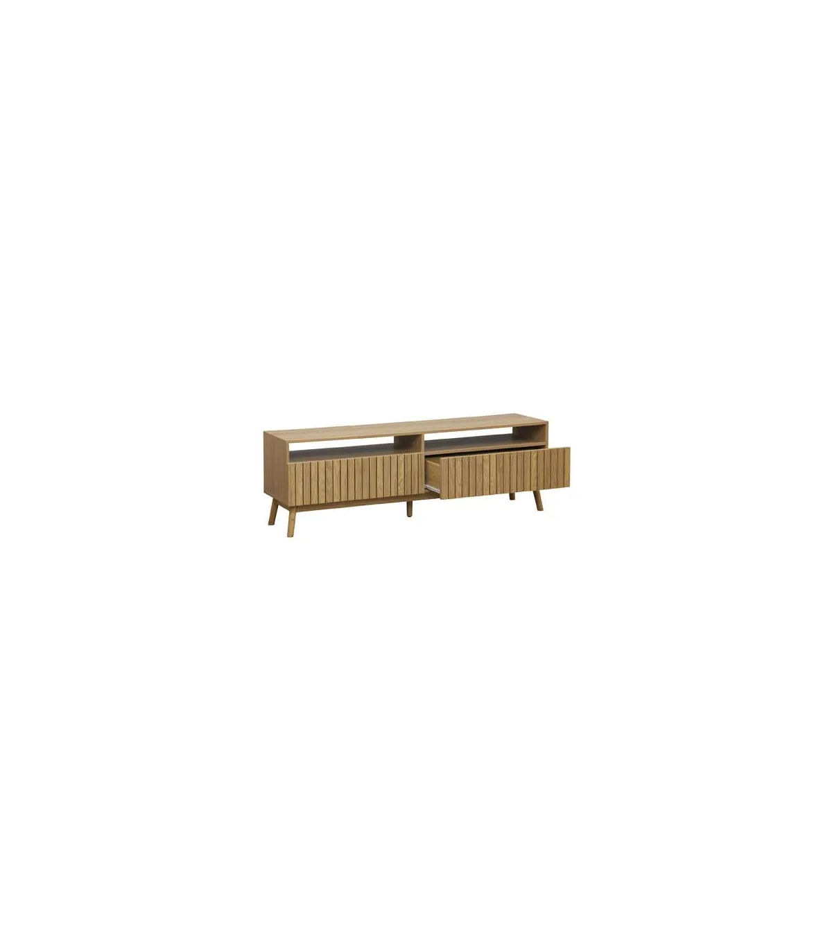 Disfruta de un estilo moderno y funcional con el mueble televisión Trend · 2 cajones · acabado en chapa de fresno.