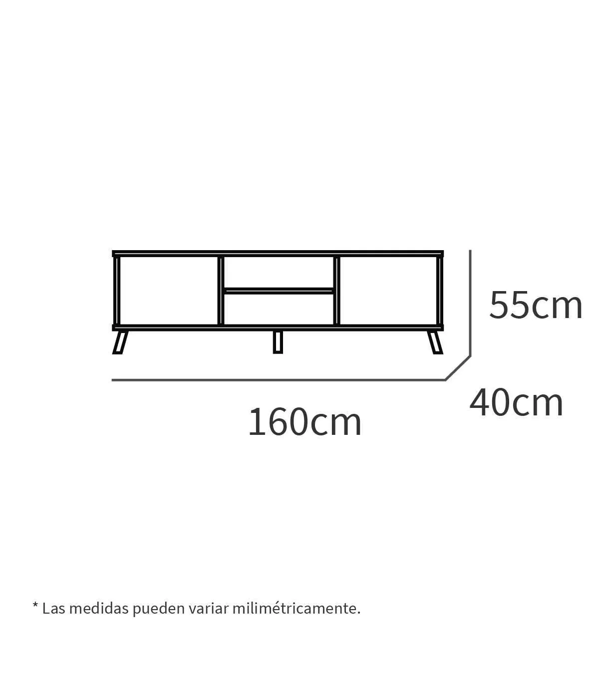 Mesa television Oslo 2 puertas y 2 huecos en acabado color roble gold, 50 cm(alto)160 cm(ancho)40 cm(largo)