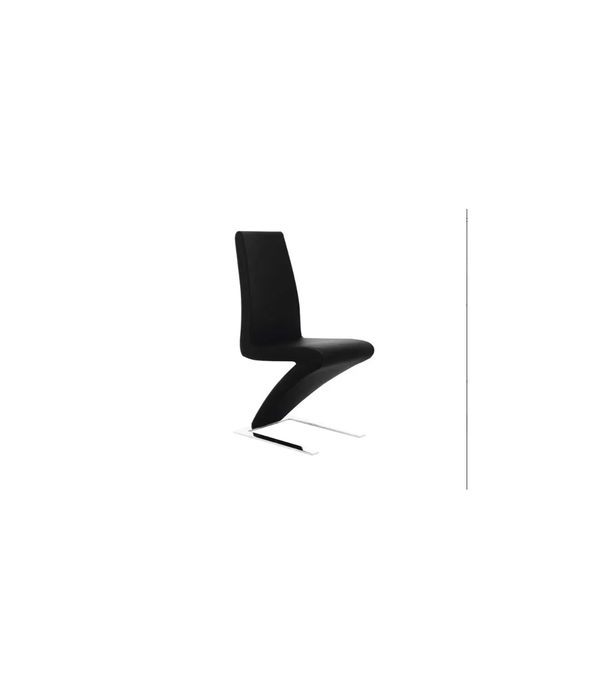 Pack de 2 sillas. Tapizada en polipiel de alta calidad en color negro, Costuras con hilo al tono de la tapicería. Cremallera en parte trasera. Pie de acero en forma de horquilla cromado.