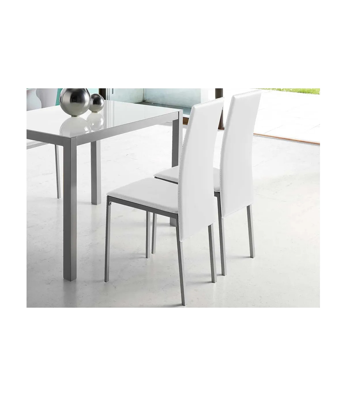 Con un estilo sencillo pero a la vez elegante y funcional, estas bonitas Sillas son perfectas para salón o comedor y puedes escoger el tapizado en polipiel blanco con estructura níquel mate.