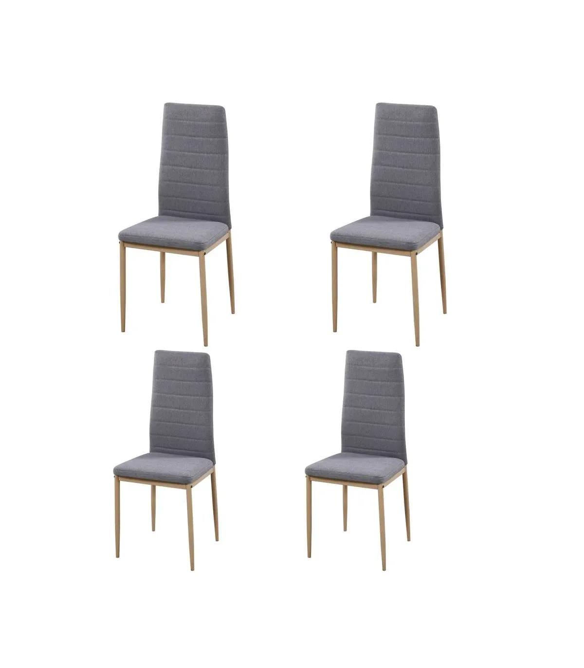 >Este pack de 4 sillas es una elección versátil que se adapta fácilmente a diferentes estilos decorativos. Su diseño con estructura de acero pintado roble y asiento tapizado en tejido PU gris las convierte en una opción elegante y funcional para mejorar el ambiente de tu hogar.