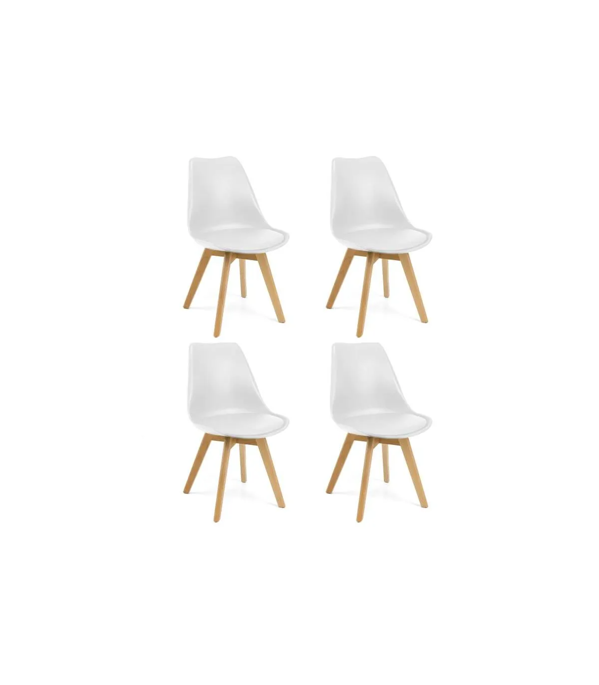 El pack de 4 sillas es una opción moderna y funcional para complementar tu comedor u otros espacios de tu hogar. Estas sillas cuentan con patas fabricadas en madera 100% Haya, lo que les brinda un aspecto natural y elegante. Las patas han sido lacadas con un barniz que resalta el color natural de la madera, proporcionándoles protección y realzando su belleza.
