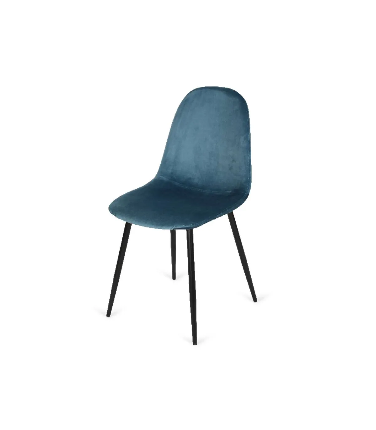 Estas sillas son una expresión de elegancia y modernidad para cualquier ambiente. Su tapizado en tela velvet azul le otorga un aspecto lujoso y sofisticado, mientras que las patas metálicas en negro añaden un toque de contraste y contemporaneidad.