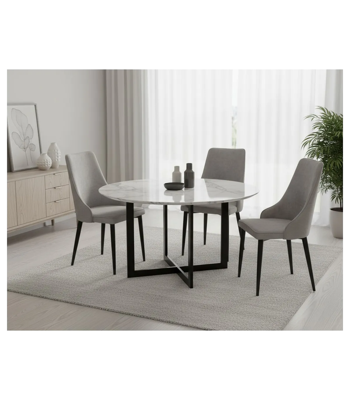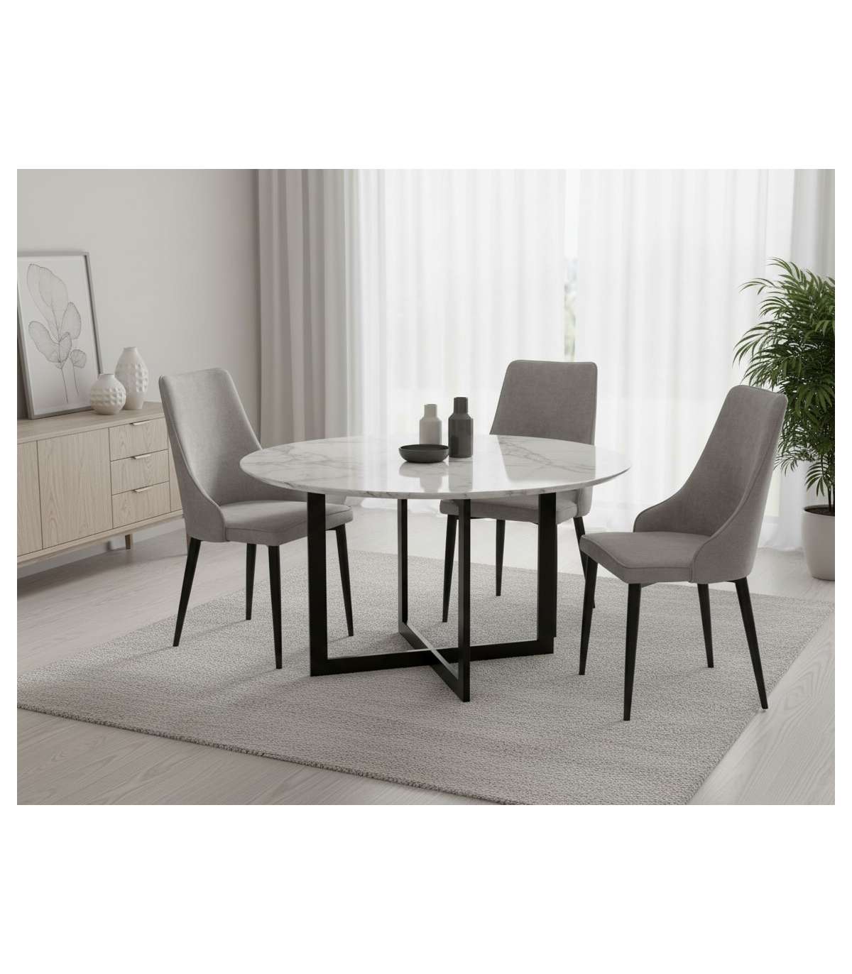 Tapizado en tela tipo Lido gris claro: La tela tipo Lido ofrece un aspecto elegante y suave al tacto, proporcionando comodidad y estilo a la silla. Este tono es versátil y fácil de combinar con diversos esquemas de decoración, añadiendo un toque de calidez al ambiente.