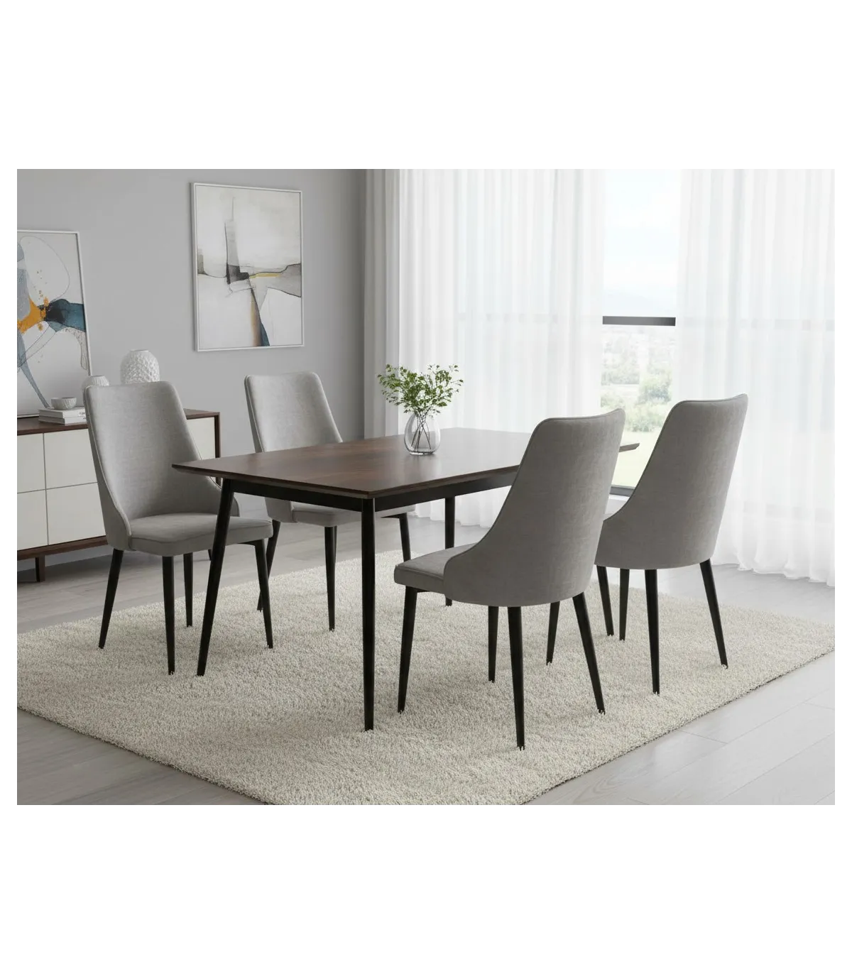 Transforma tu espacio con el elegante Pack de 4 sillas Imperial en gris claro · diseño moderno · comodidad excepcional.