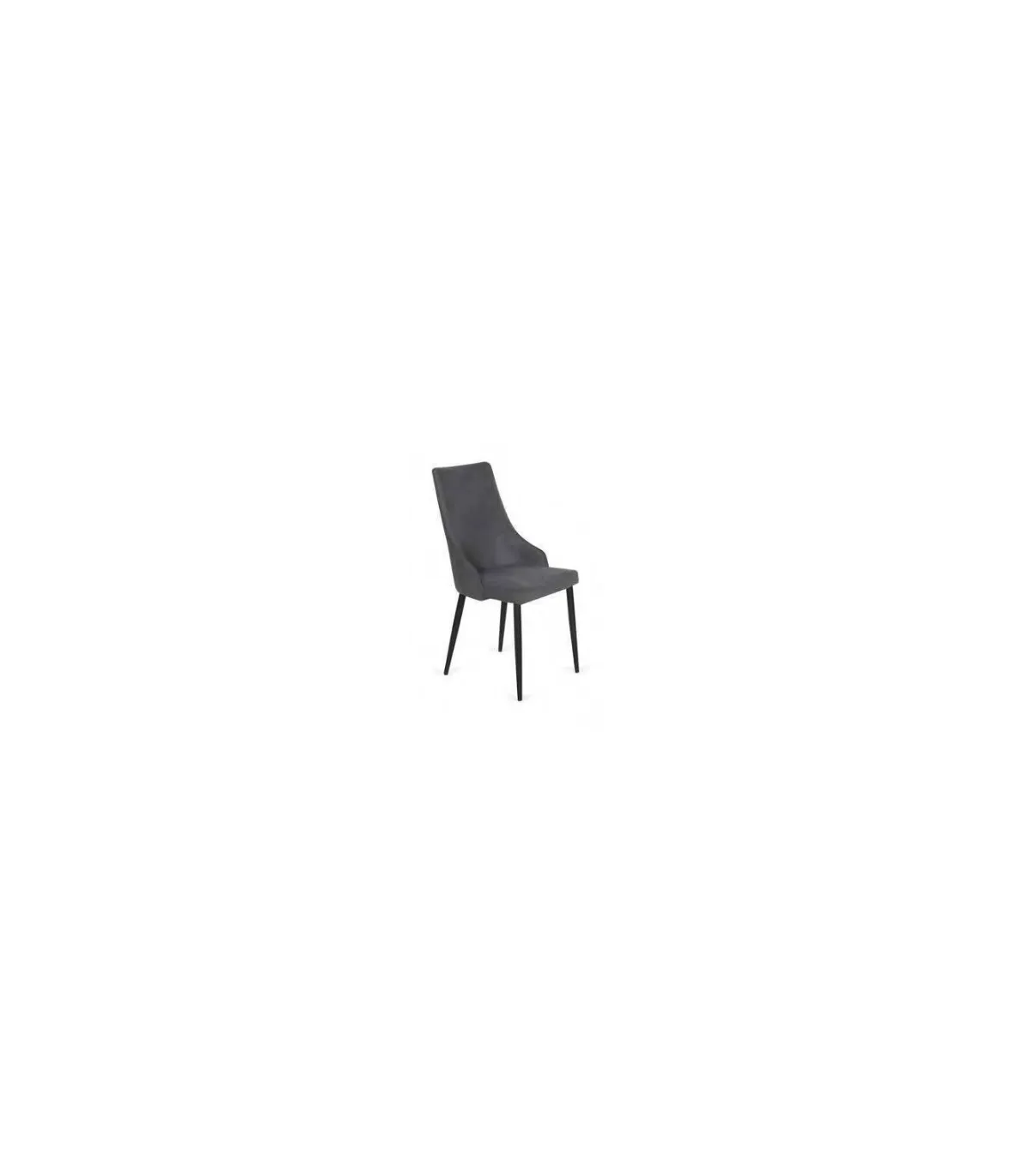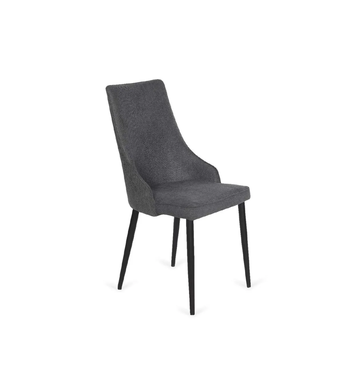 La silla tapizada en tela tipo Lido gris oscuro con ribete en todo el perímetro y patas de metal color negro es una opción refinada y contemporánea para complementar cualquier espacio interior. Aquí tienes una descripción detallada: