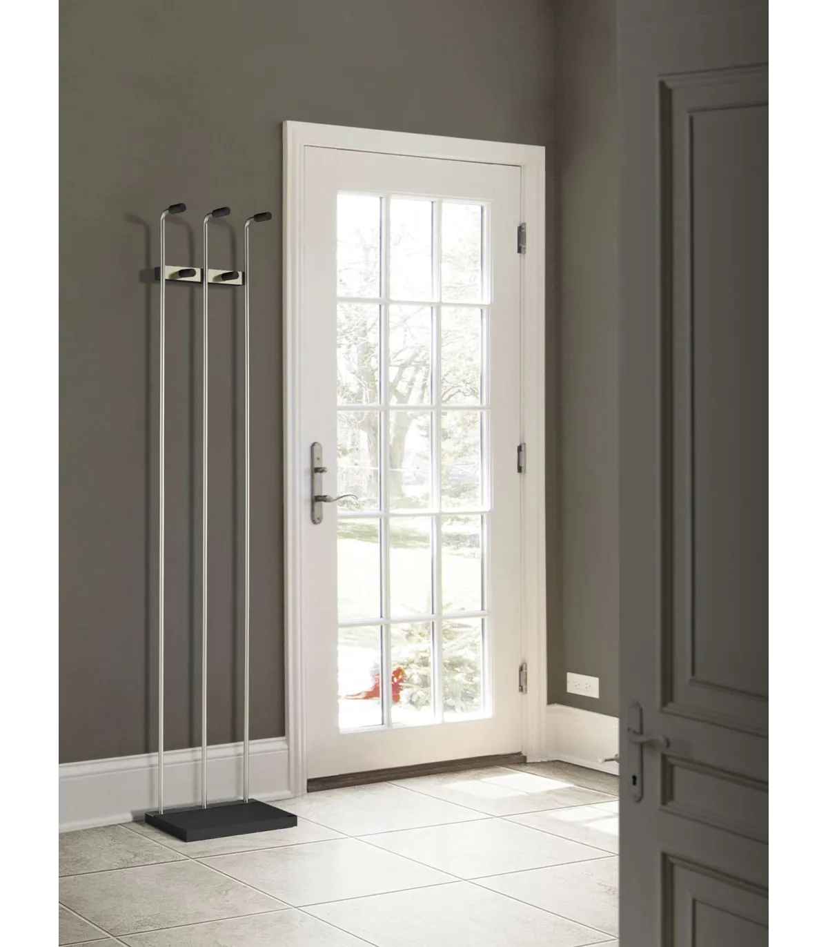 Organiza tu espacio con estilo gracias a este perchero elegante y funcional · herrajes en cromo satinado · lacado negro.