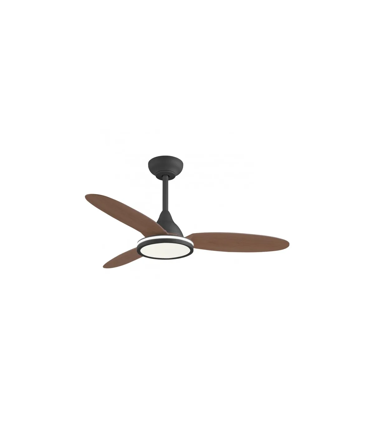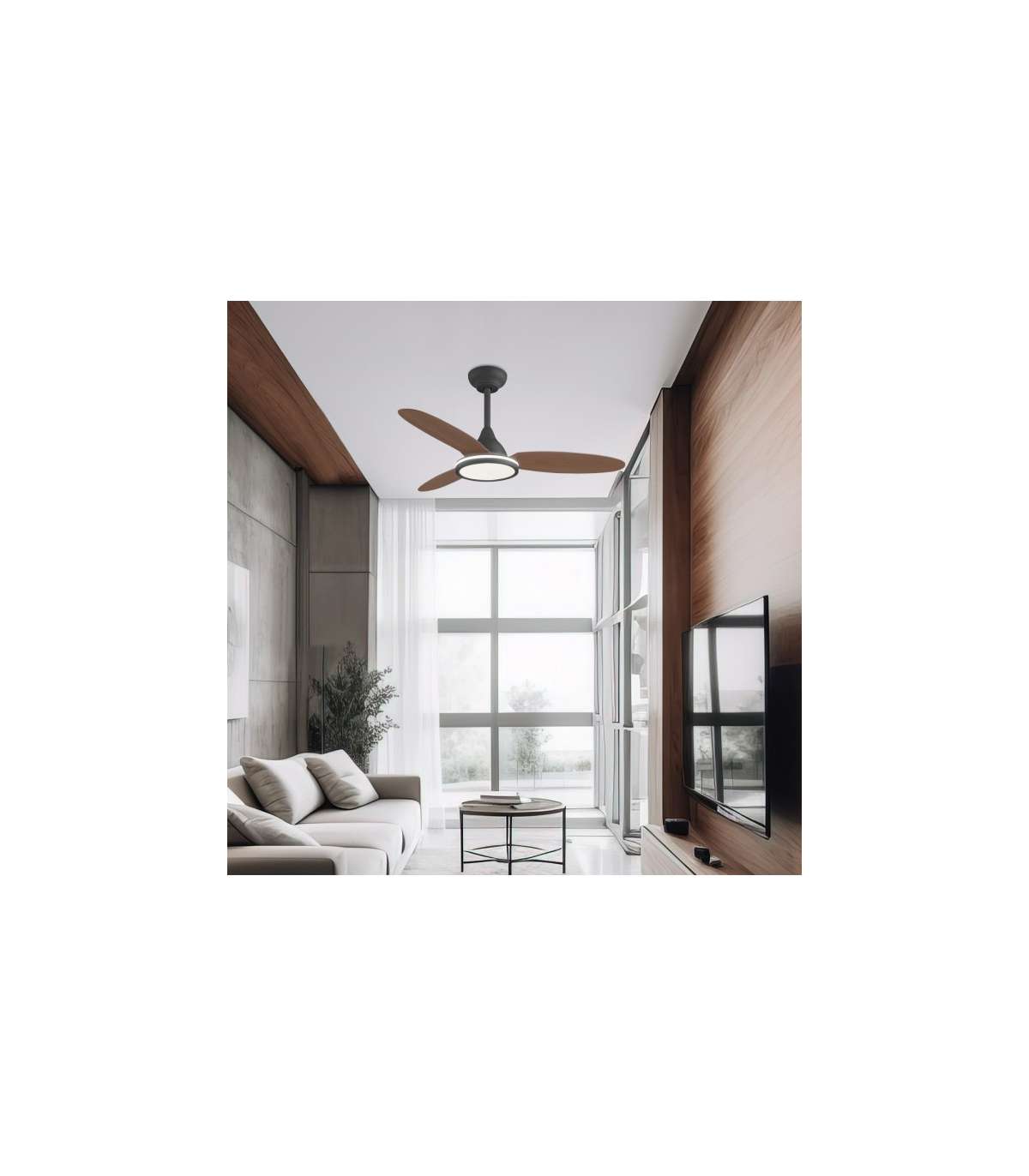 Disfruta de un ambiente fresco y elegante con el ventilador Mahon · 3 palas · acabado negro/madera · ideal para cualquier espacio.
