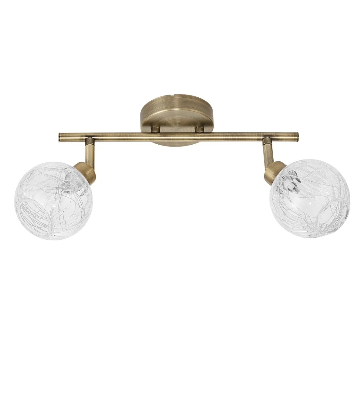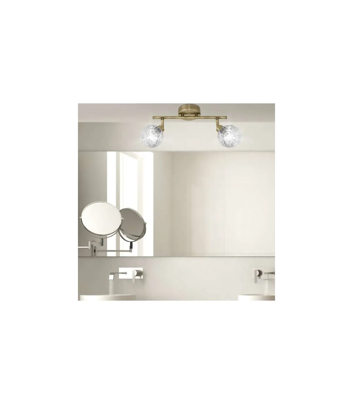 Plafón 2 luces alargado Menta, moderno, dos puntos de luz orientables con tulipas de cristal decoradas por hilos metálicos y estructura de metal disponible en cuero . Su diseño minimalista y actual es ideal para iluminar la mesa de tu comedor, salón....