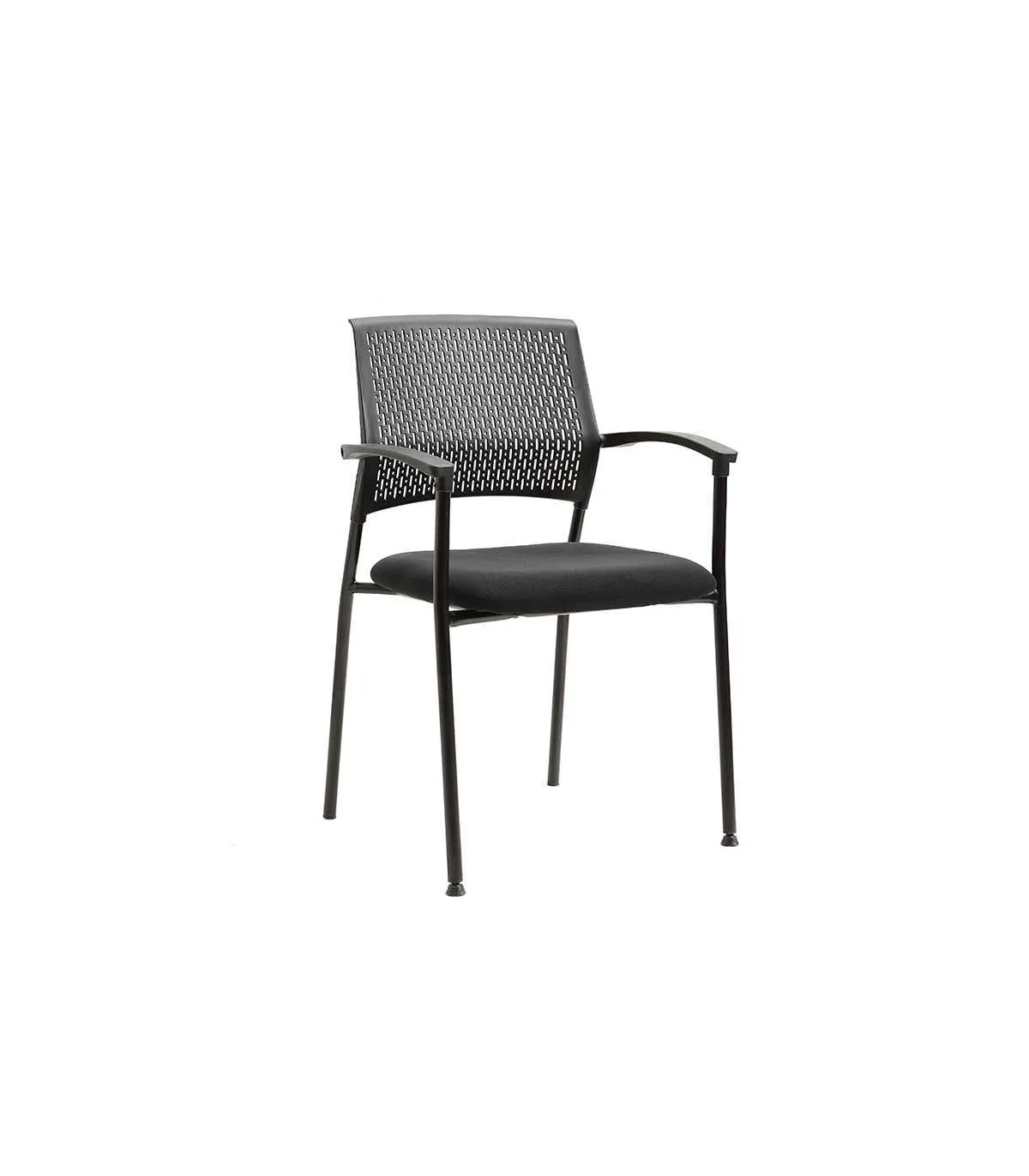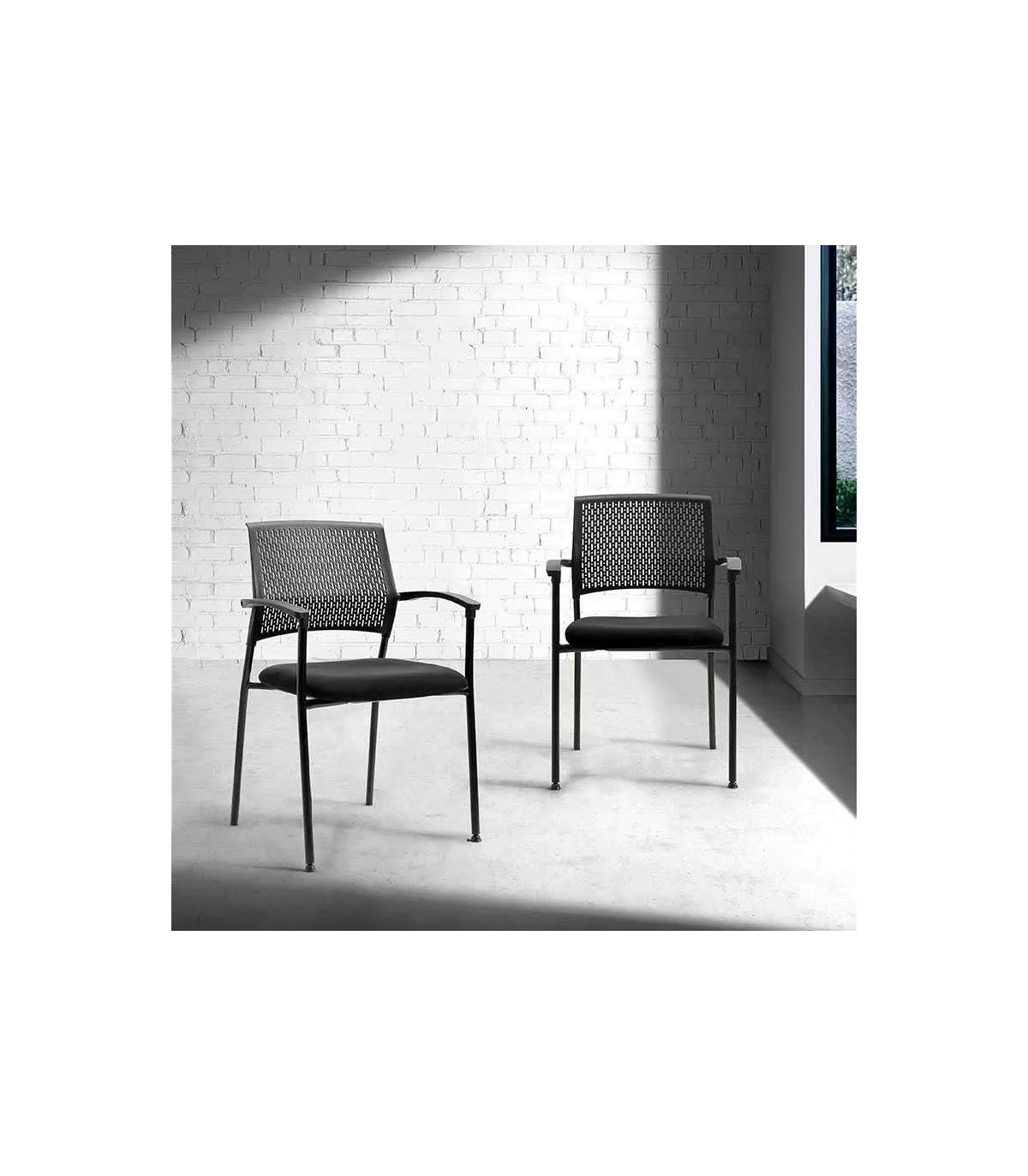 Pack de 4 Sillas confidente , para oficina o estudio con asiento tapizado textil negro, estructura metálica en negro, y respaldo calado en negro de alta calidad.