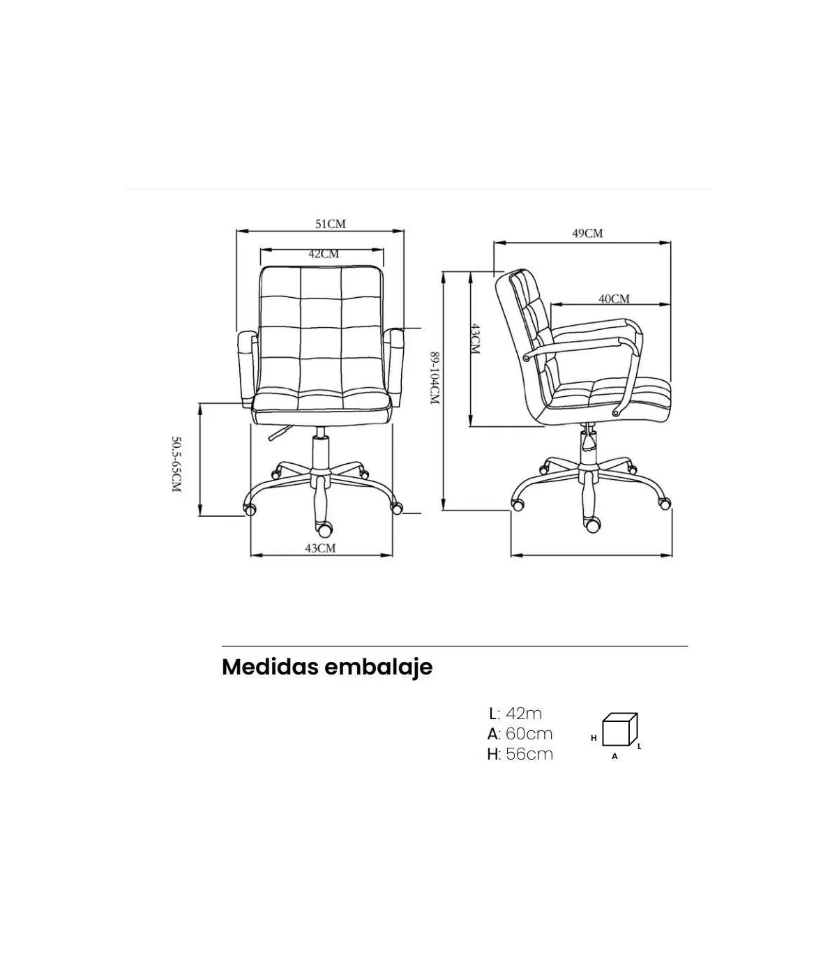 • Altura del asiento: 50.5cm - 65cm Ancho asiento: 42cm
