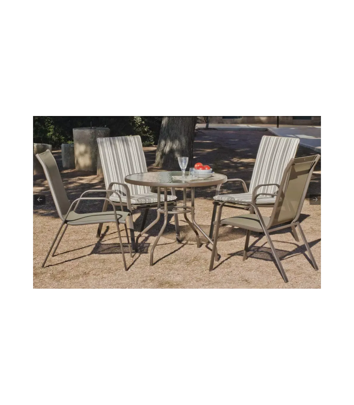 Pack de 4 sillones apilables para jardín y terraza, fabricados en acero inoxidable pintado en color bronce.