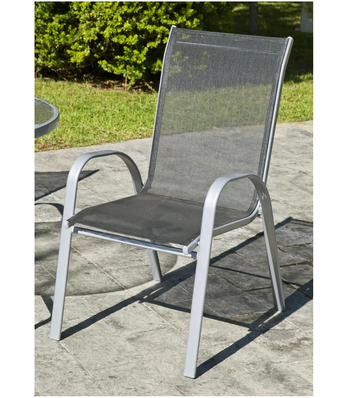 Disfruta de comodidad y estilo con el Pack de 4 sillones apilables de acero/textilen Seul-3 · Resistente y ligero · Ideal para exteriores.