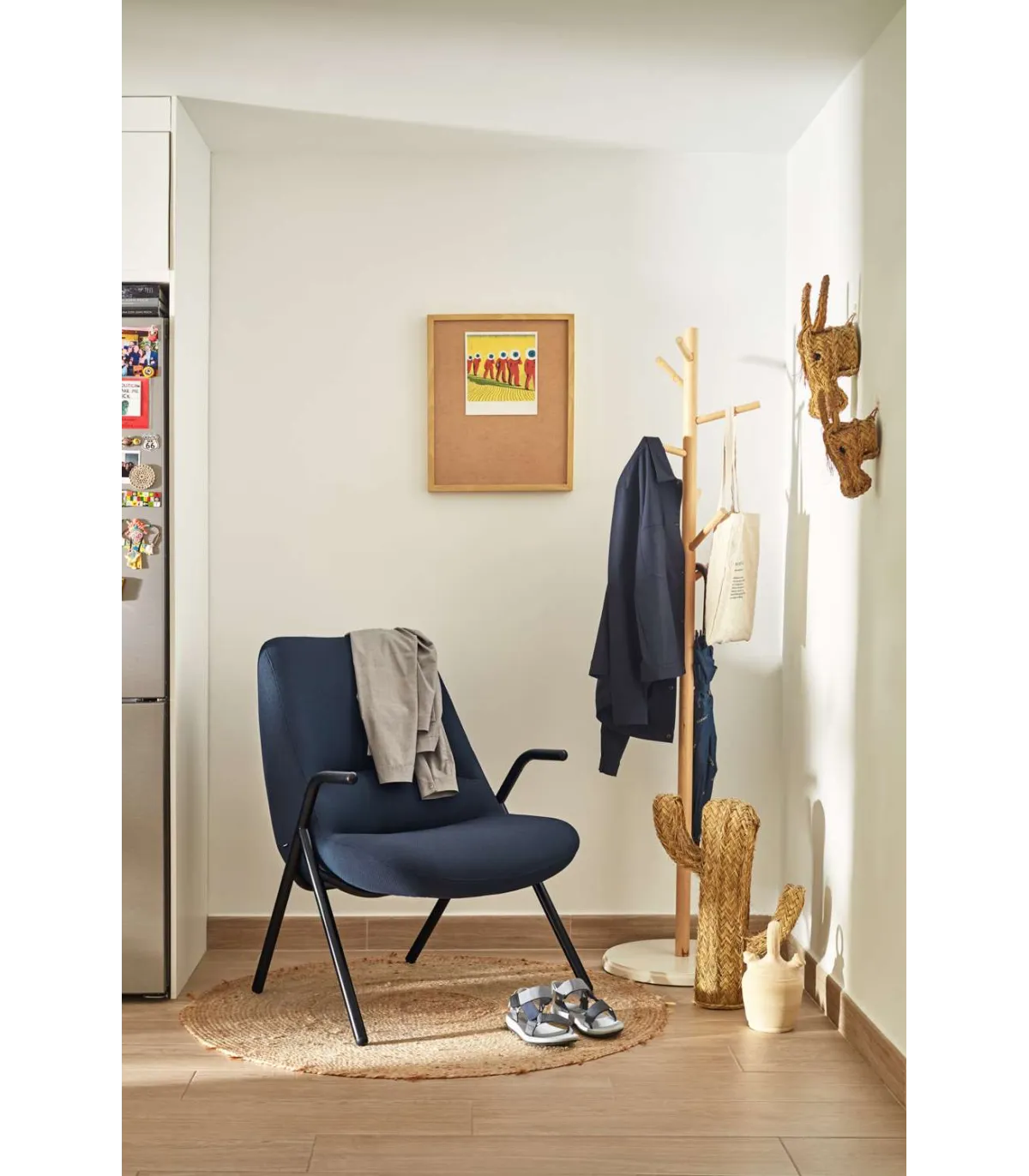 Disfruta de comodidad y estilo con la butaca Dins tapizada en azul marino · diseño moderno · perfecta para cualquier espacio.
