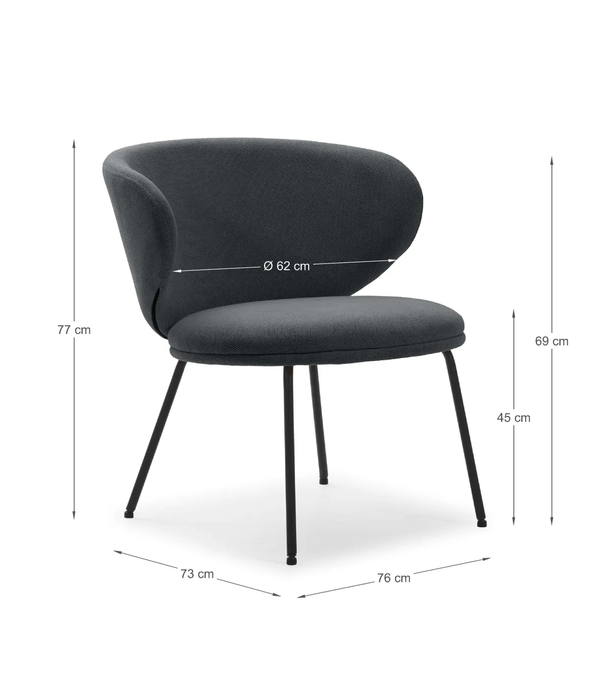 Butaca baja modelo Rebeca tapizado textil gris oscuro, 77.5cm (alto) 70cm (ancho) 79.5cm (largo)