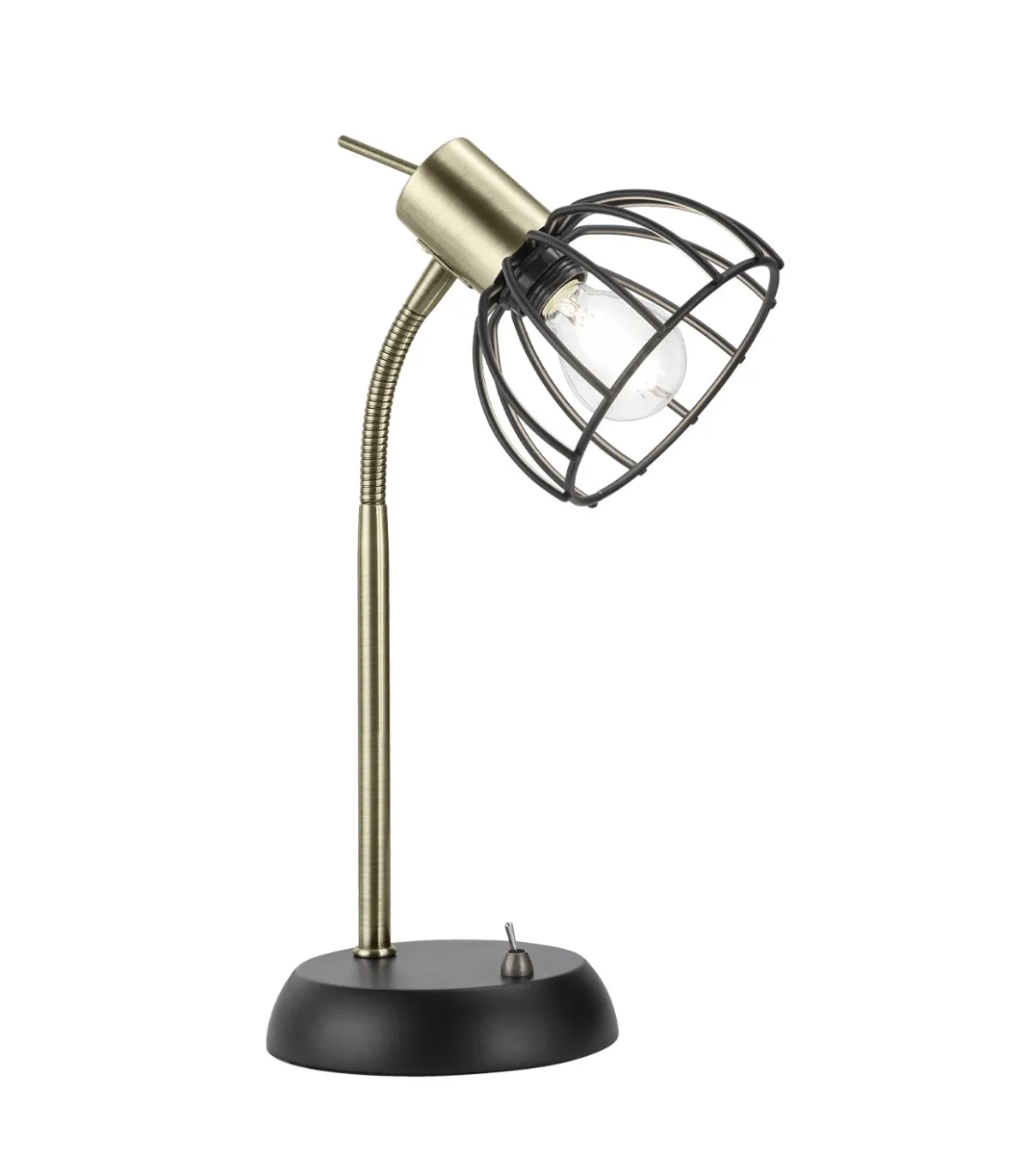 Sobremesa fabricado en metal negro y cuero satinado con tulipa metálica modelo Bermeo. Ideal para cualquier habitación de la casa.