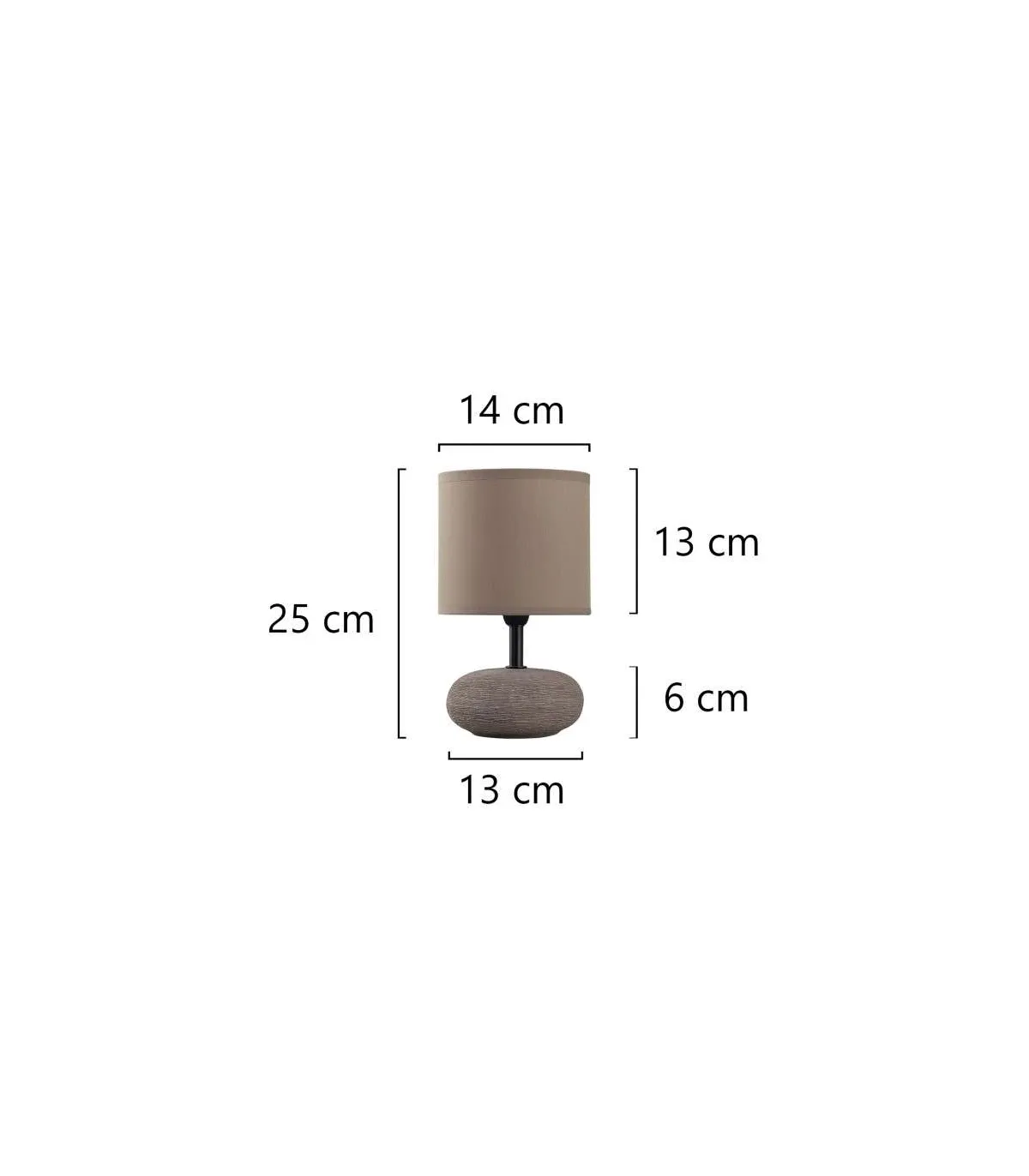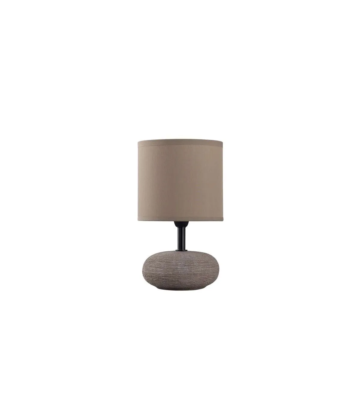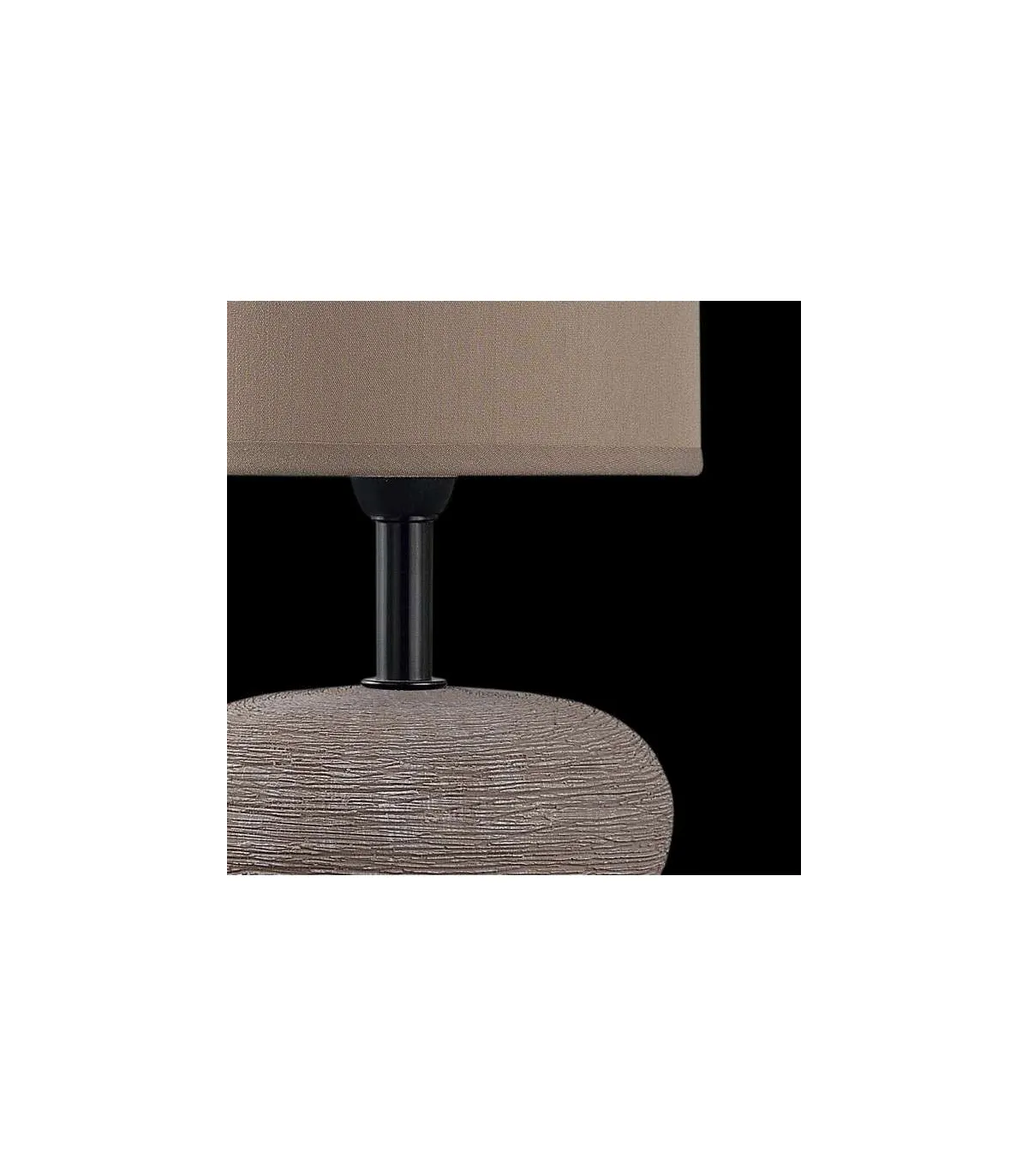 Sobremesa modelo Bloson pantalla de tela y estructura de cerámica en marrón. Un elegante sobremesa que le dará un aire sofisticado a tu dormitorio, comedor o zonas de paso.