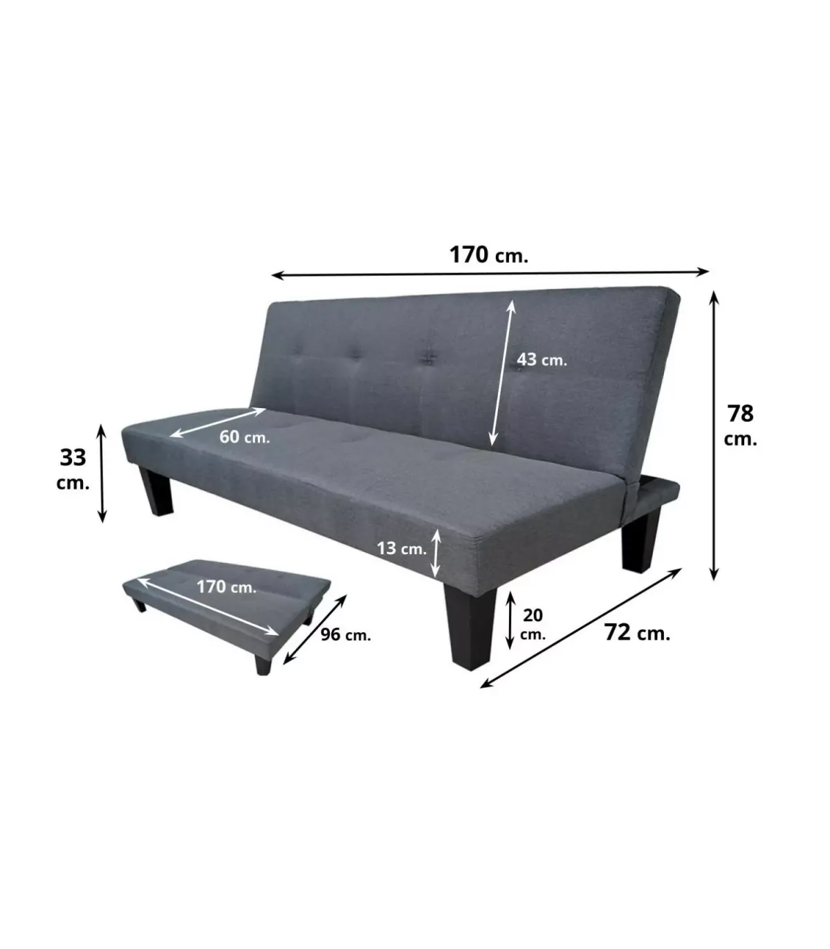 Sofá cama 3 plaza clic clac económico y moderno en color gris. ¿Tu espacio es limitado? Este modelo de sofá clic clac es la solución perfecta para aprovechar al máximo cada metro cuadrado.