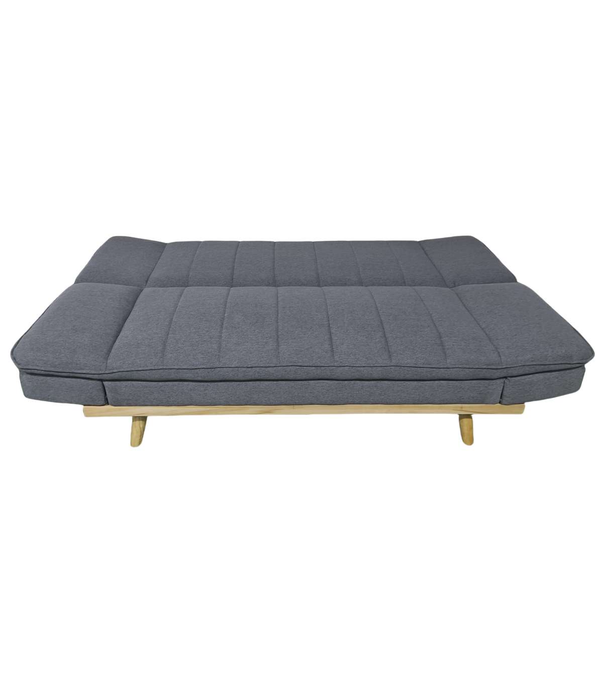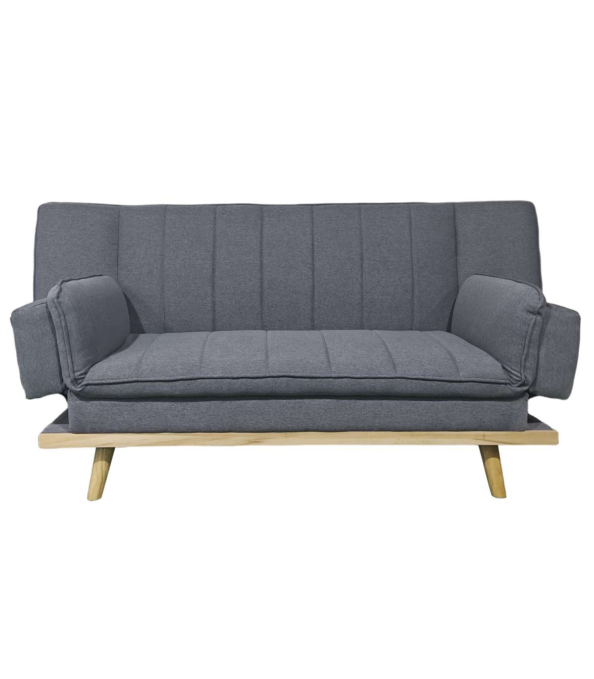 Sofá cama tapizado en tejido gris.