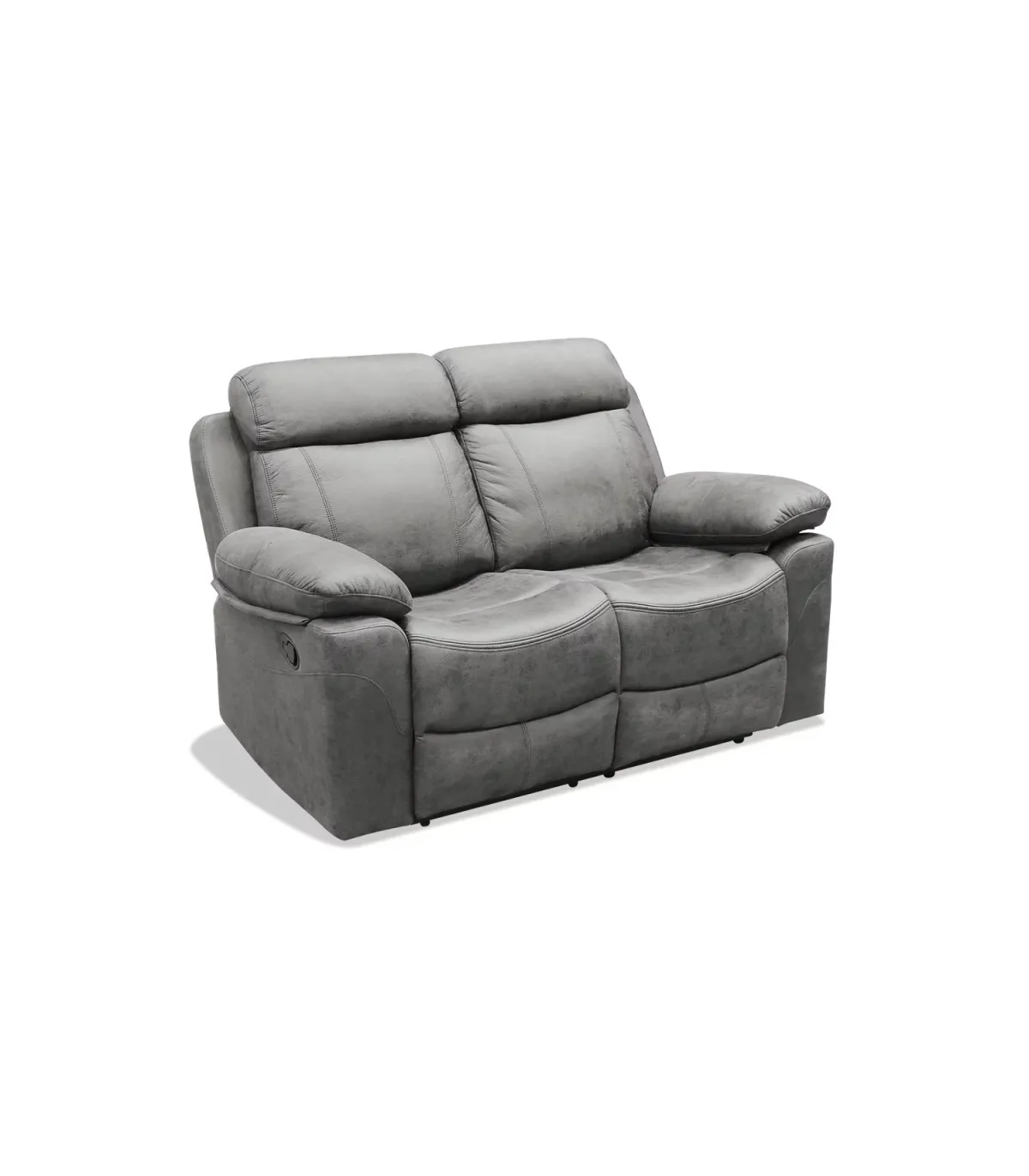 Disfruta de un confort excepcional con el sofá dos plazas relax Málaga · tapizado textil gris · medidas ideales para cualquier espacio.