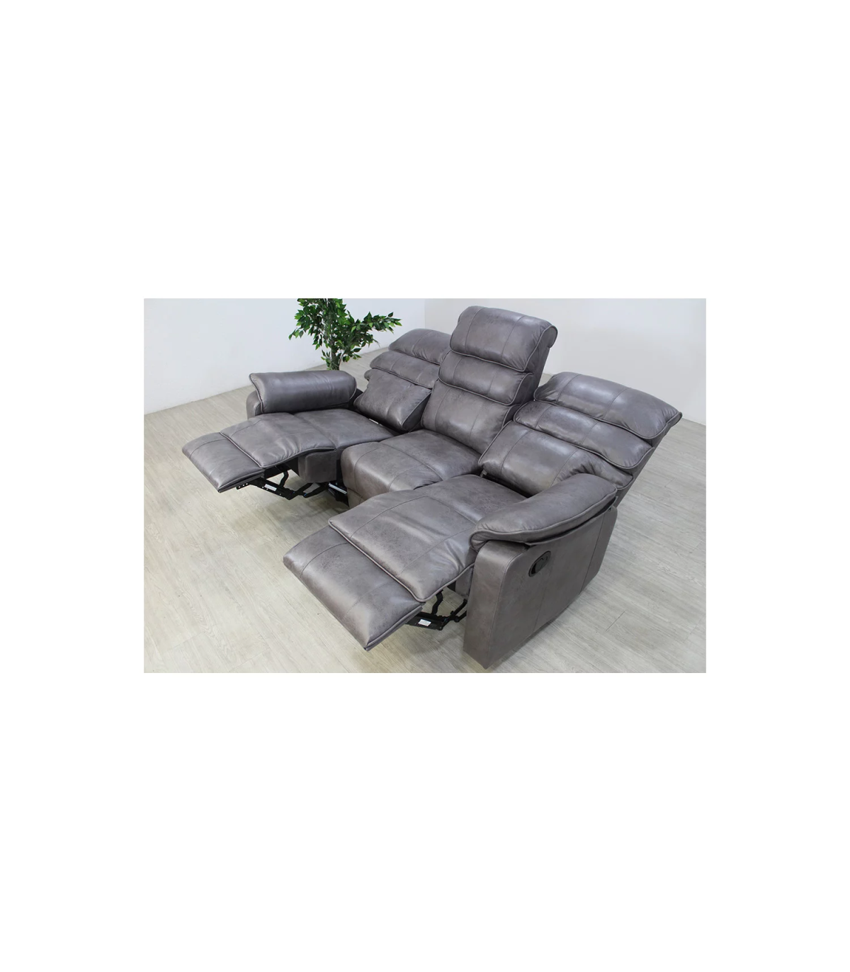Sofá tres plazas relax con palanca modelo Gallardo tapizado textil gris, 200cm(Ancho) 83cm(Fondo) 103cm(Alto)
