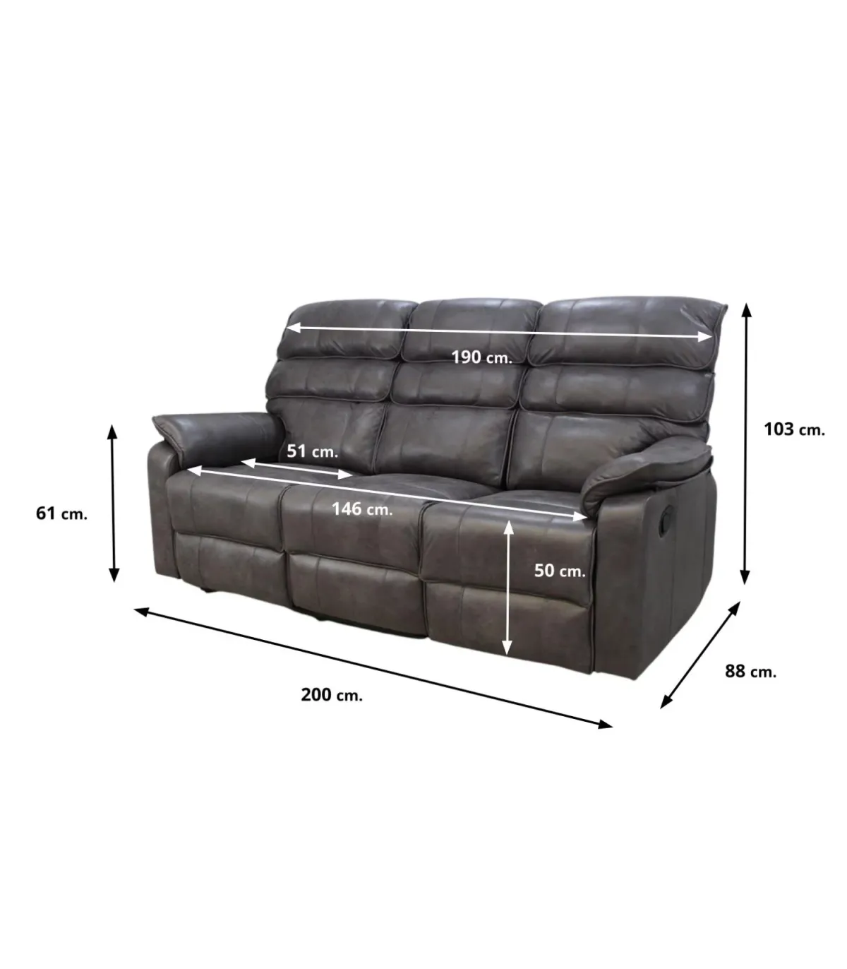 Sofá relax de 3 plazas reclinable modelo Gallardo, es perfecto para familias o espacios grandes. Este sofá moderno de tres plazas incluye dos asientos reclinables en los extremos y un asiento central fijo.