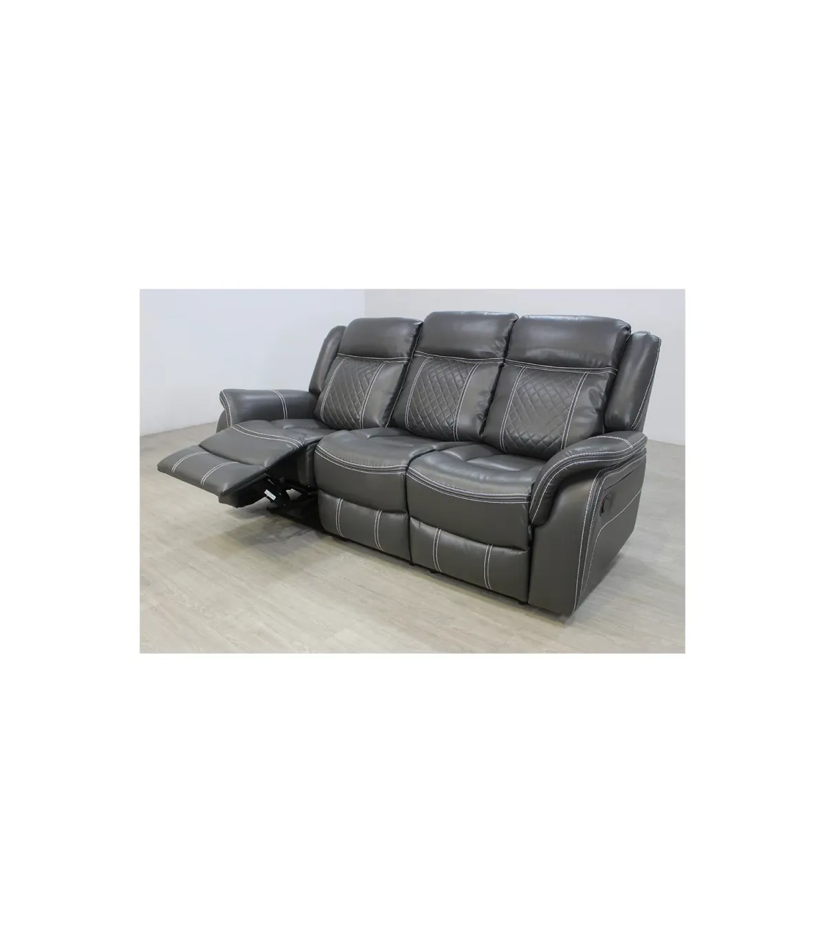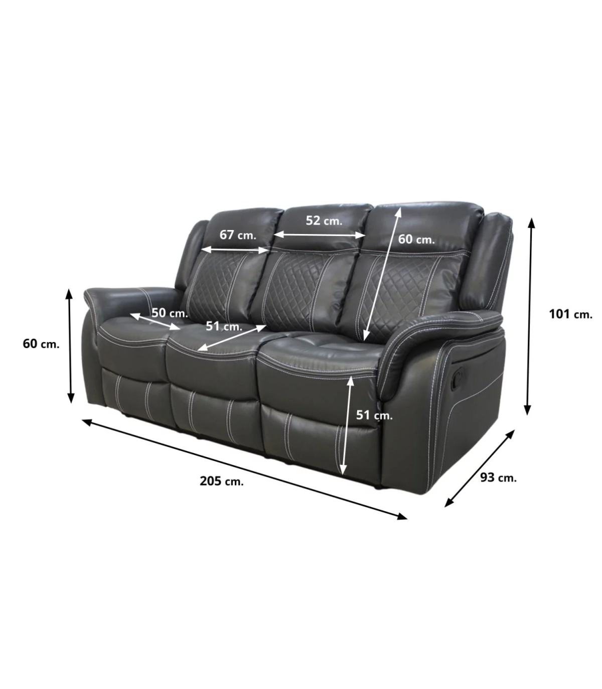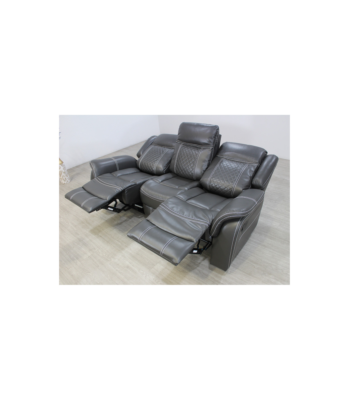 Sofá tres plazas relax con palanca modelo Urus tapizado piel sintética gris oscuro, 203cm(Ancho) 93cm(Fondo) 101cm(Alto)