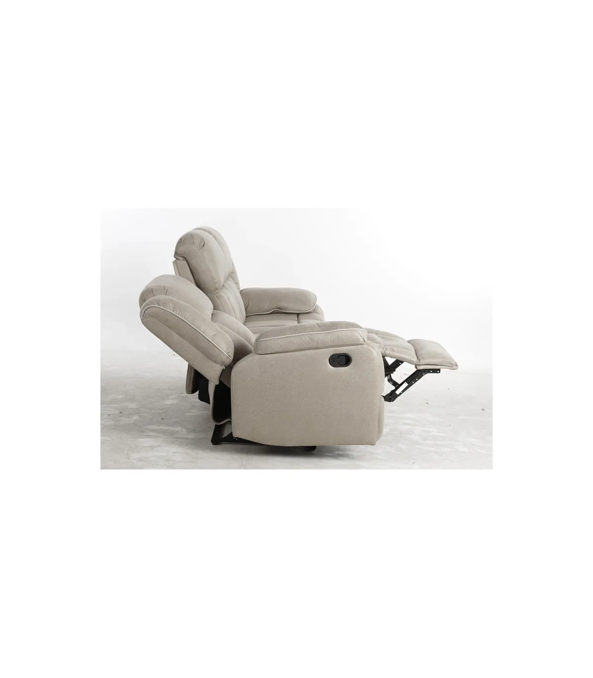 Sofá tres plazas relax con palanca modelo Cooper tapizado textil beige, 220cm(Ancho) 90cm(Fondo) 108cm(Alto)