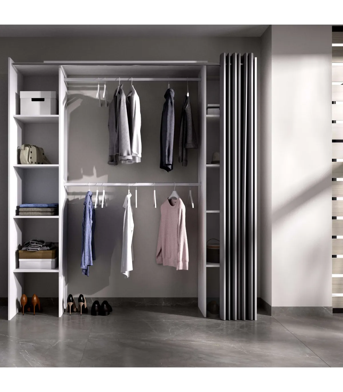 Optimiza tu espacio con el vestidor Siles, elegante y funcional · cortina incluida · baldas ajustables · diseño en blanco.