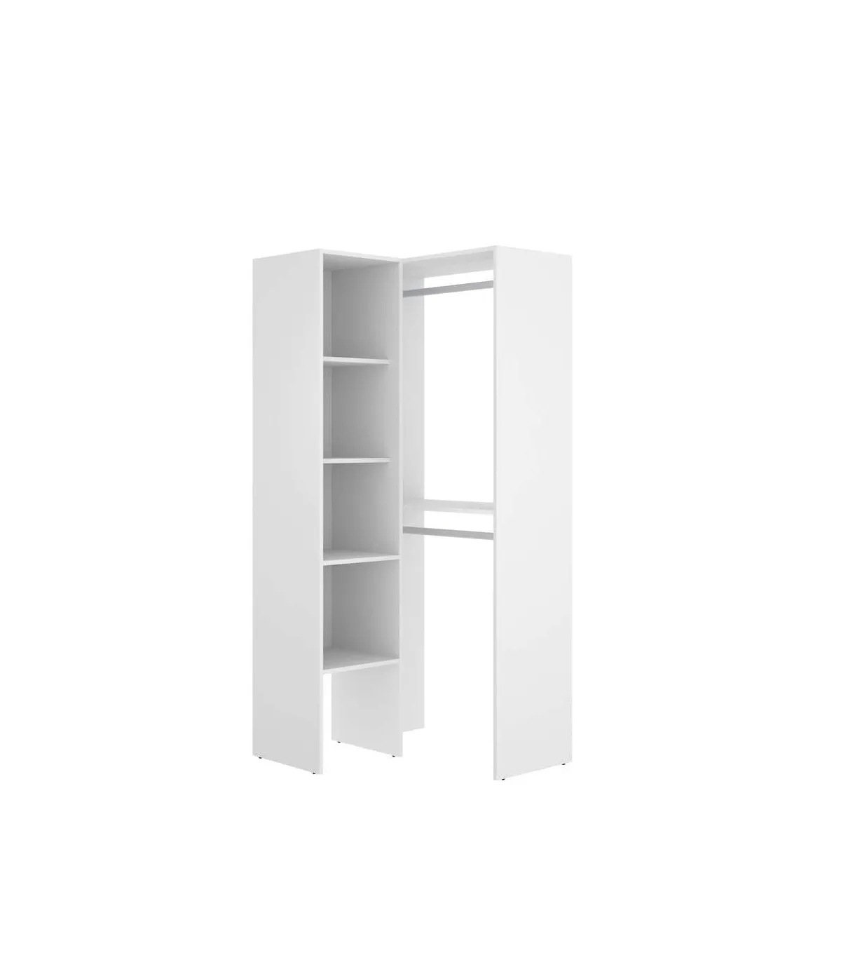 Vestidor Rincón Blanco es una solución moderna para mantener tu ropa y accesorios en orden, adaptándose perfectamente a cualquier rincón de tu habitación.