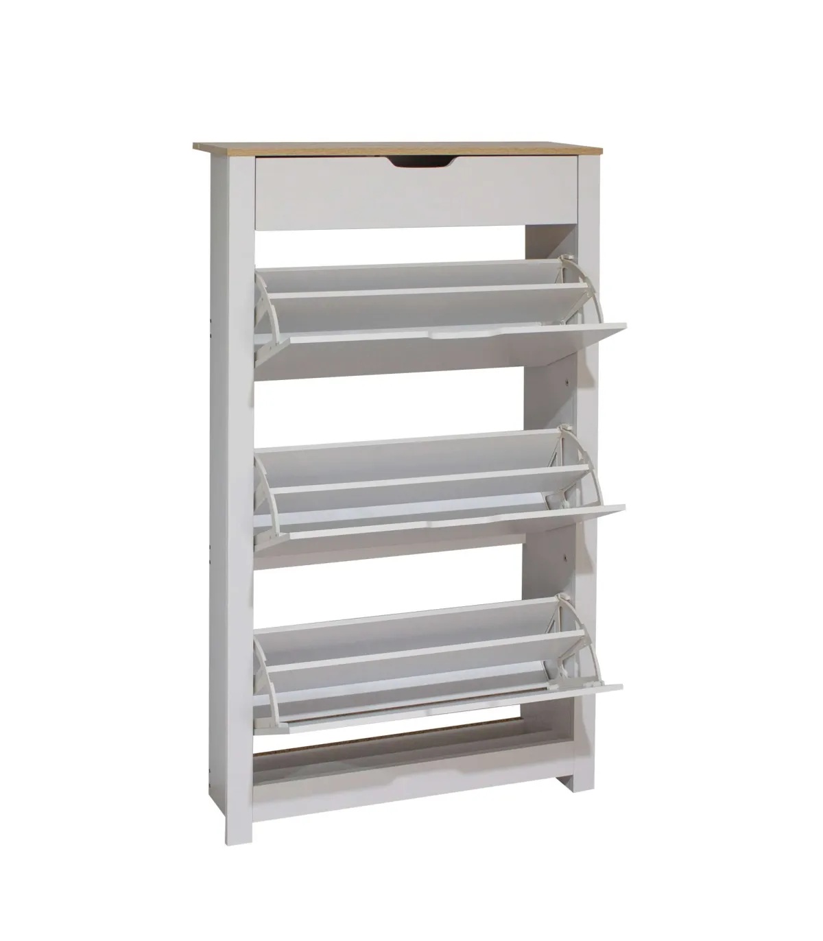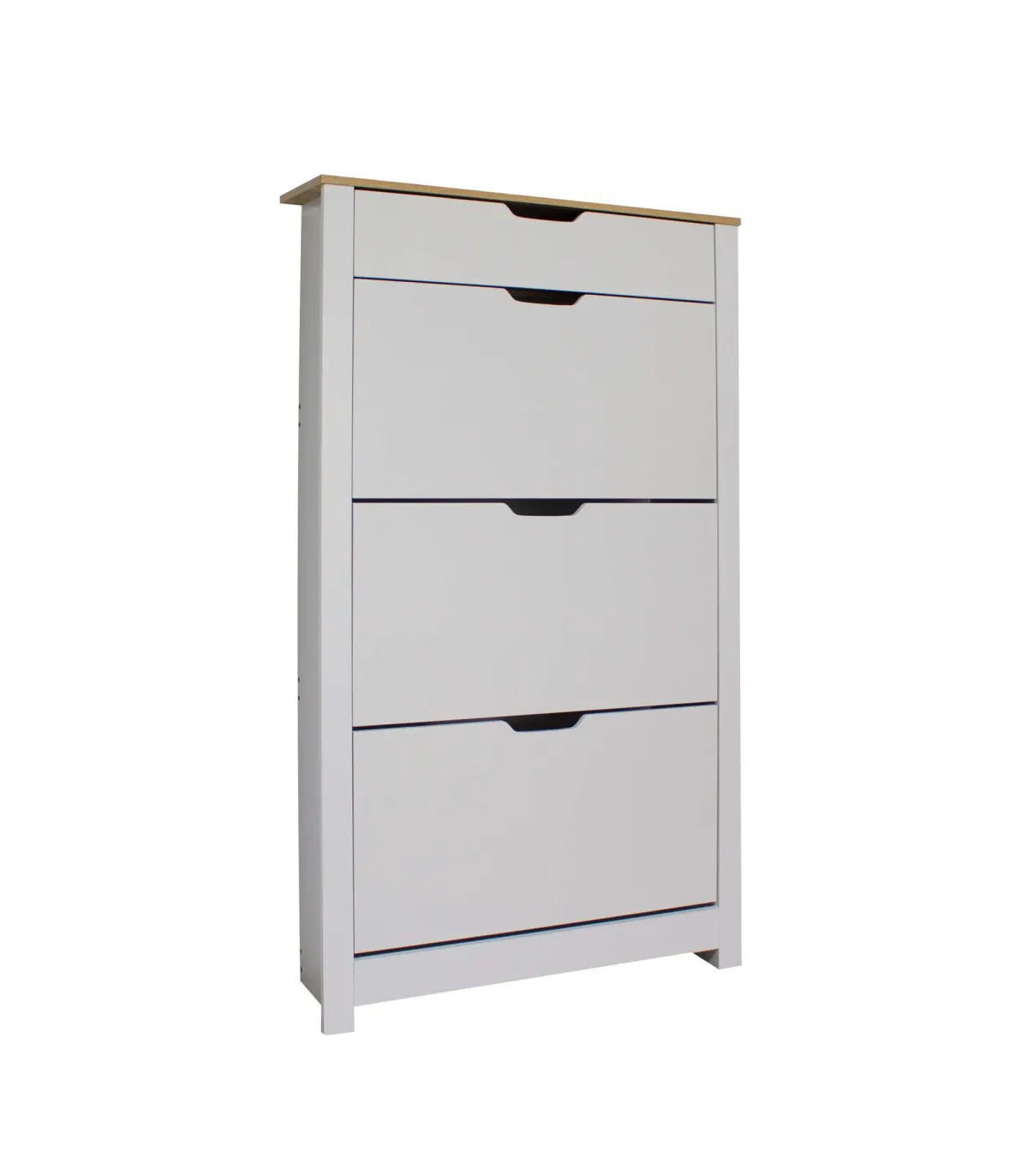 El diseño compacto y bien organizado del Armario Zapatero 3 trampones y 1 cajón lo hace adecuado para espacios reducidos, como la oficina o el recibidor. Sus múltiples compartimentos te permiten mantener tus zapatos ordenados y al alcance, mientras que el cajón adicional brinda un espacio extra para guardar accesorios o artículos pequeños.