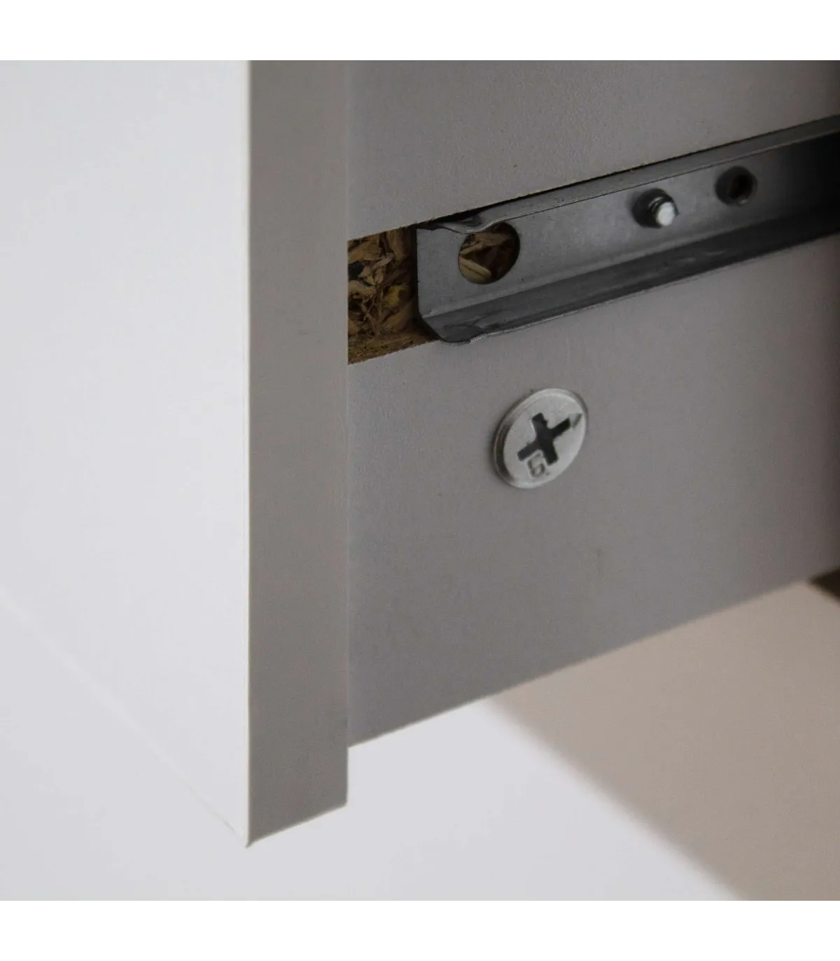Los materiales utilizados en su construcción incluyen melamina y Finish Foil de 15mm, lo que garantiza su resistencia y durabilidad. El acabado blanco en el cuerpo del armario crea un ambiente luminoso y fresco, mientras que la tapa en acabado natural agrega un toque de calidez y contraste.