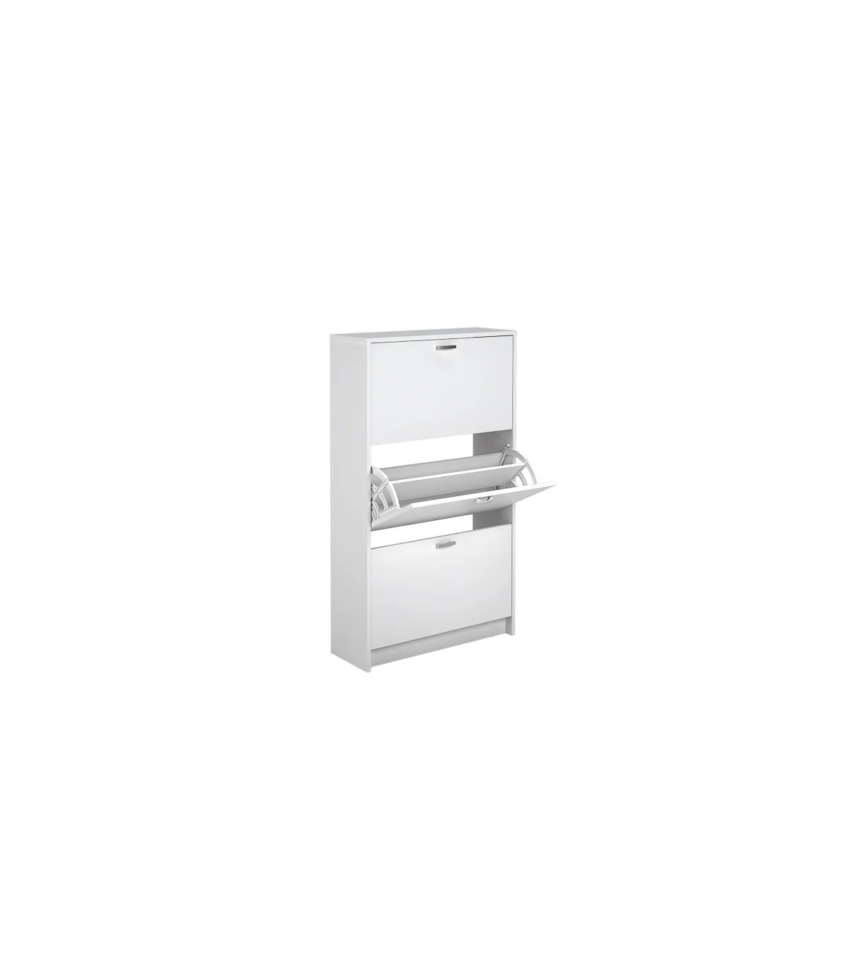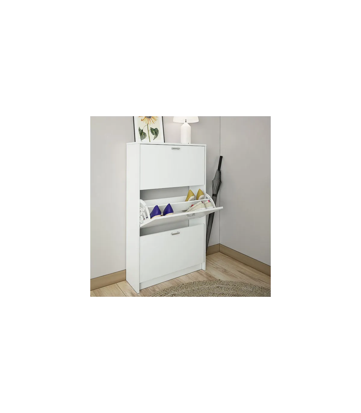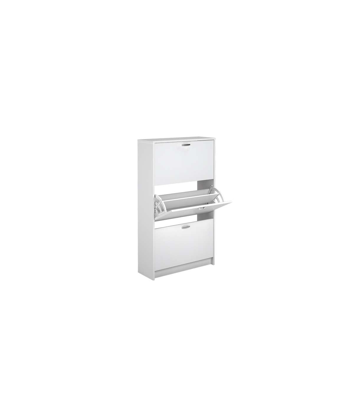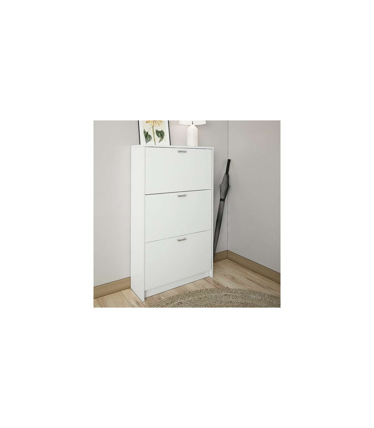 Bonito y funcional Mueble Zapatero perfecto para cuando no tienes mucho espacio o quieres un mueble de dimensiones pequeñas. Este zapatero dispone de tres trampones para 18 pares de zapatos.