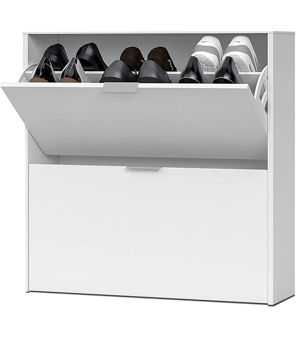 Zapatero de 2 puertas abatibles con capacidad para 16 pares de zapatos.