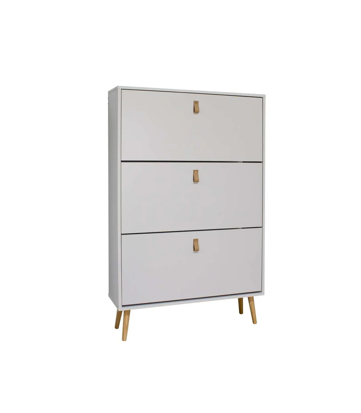 El Armario Zapatero 3 trampones Md-Aldeire combina funcionalidad y estilo, ofreciendo una solución eficiente para mantener tus zapatos ordenados y bien guardados. Su elegante diseño en color blanco y detalles en simil piel y madera de pino, hacen de este armario zapatero una pieza atractiva y práctica para complementar la decoración de cualquier ambiente.