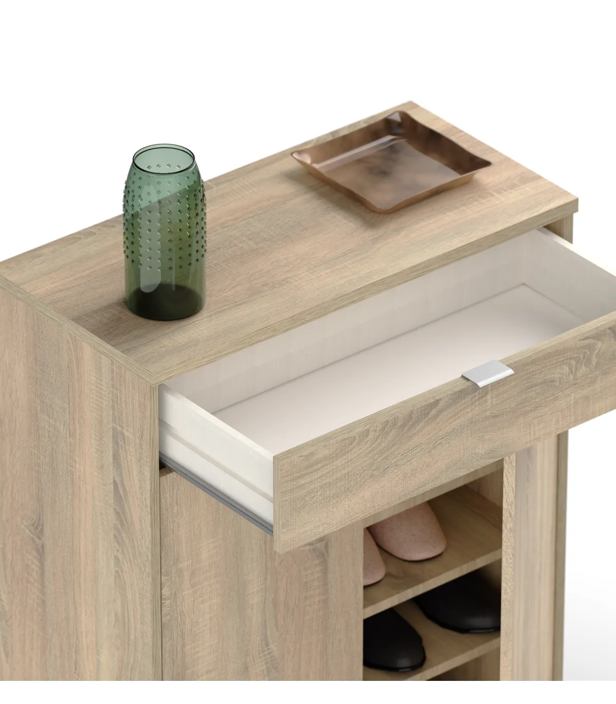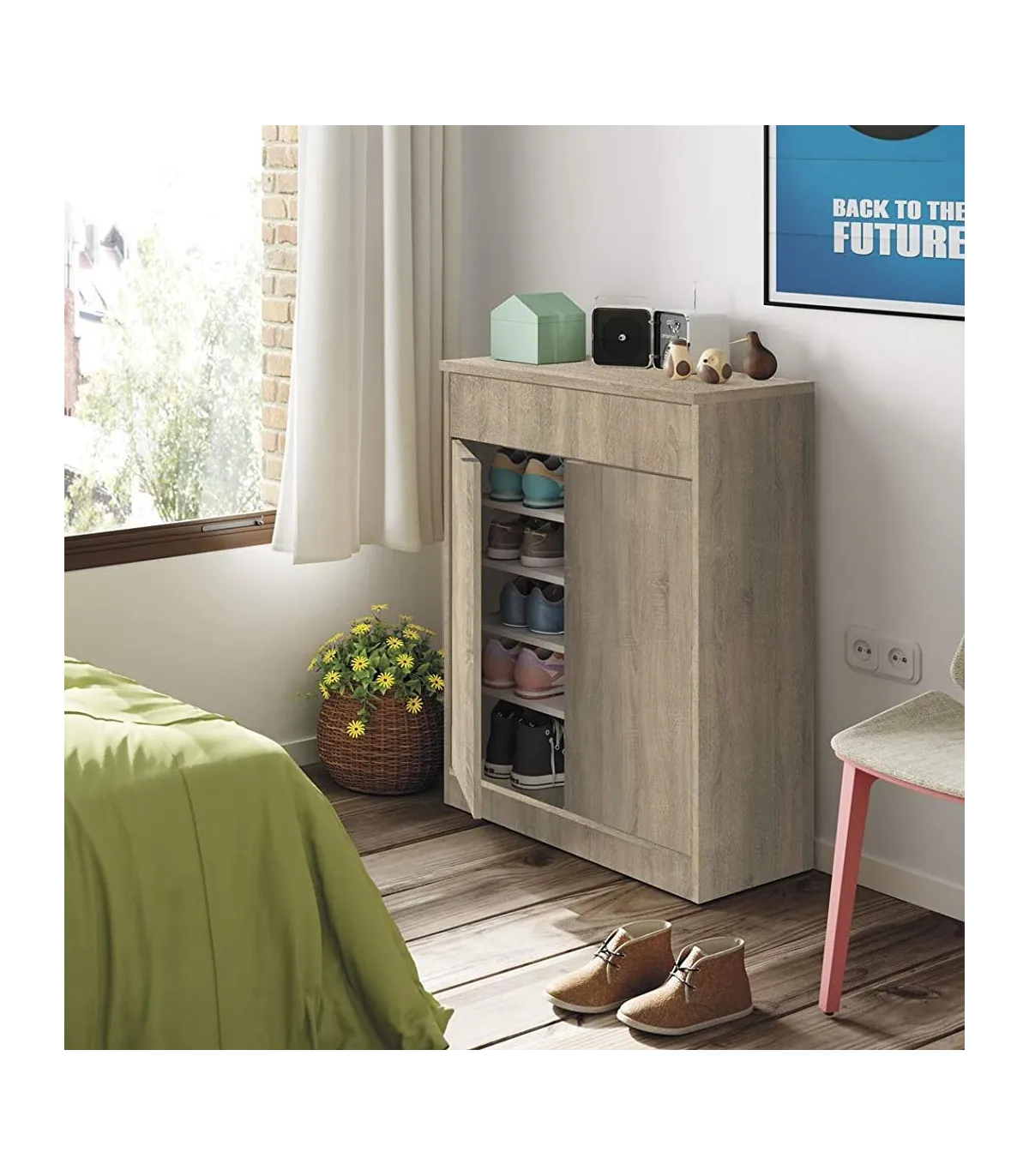 Este armario zapatero con dos puertas y un cajón en roble cambrian lucirá muy bien en cualquier estancia de tu casa.