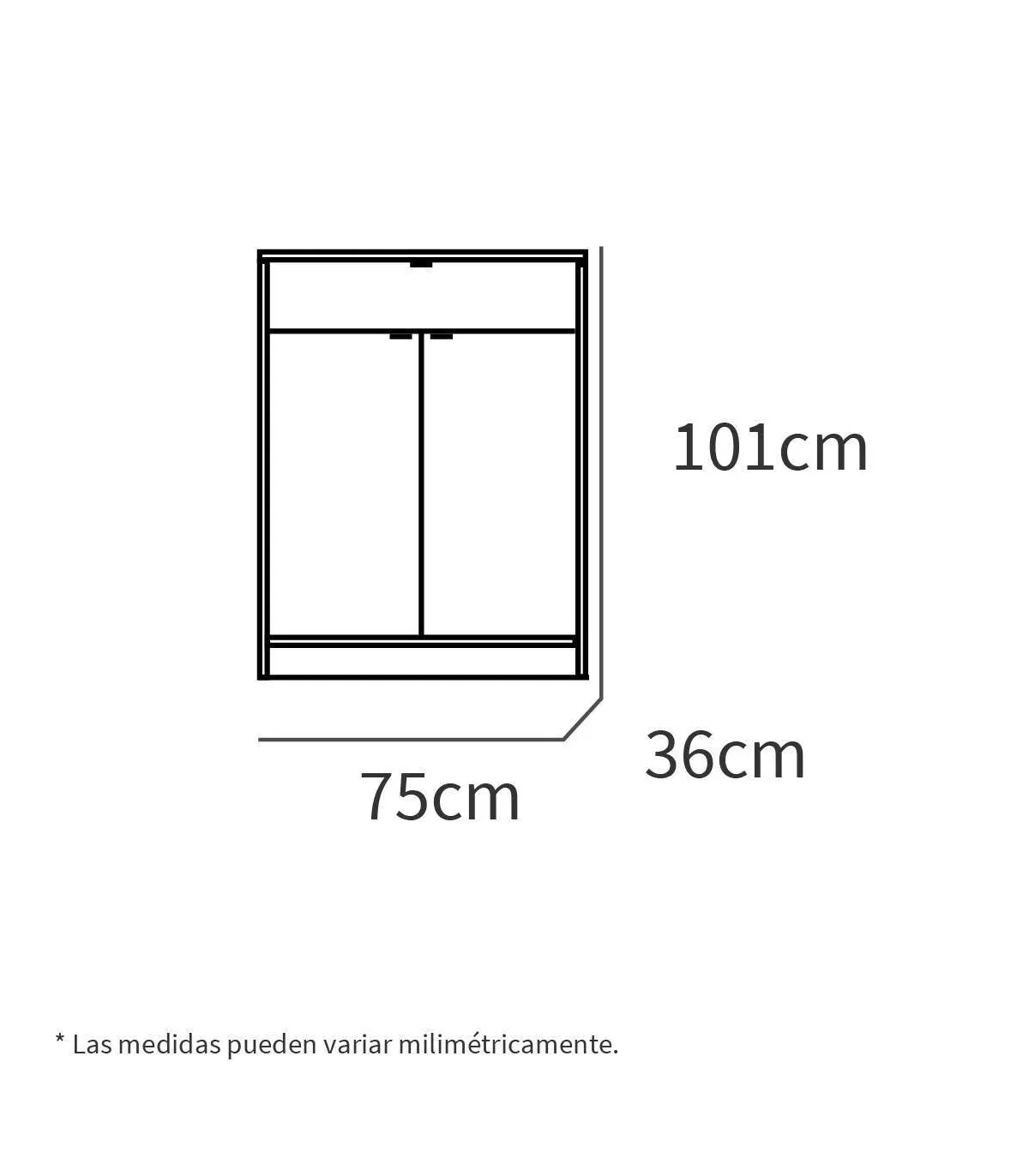 • Mueble: 101 cm (alto) x 75 cm (ancho) x 36 cm (prof.)