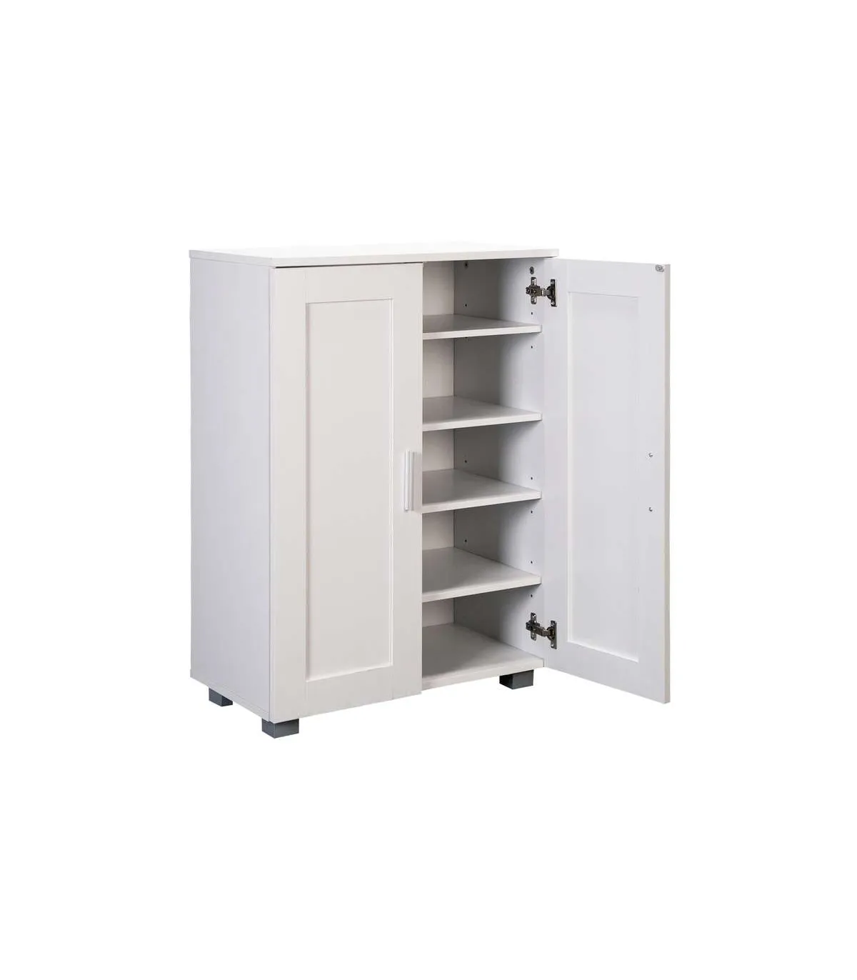 Con dos puertas espaciosos, este armario zapatero ofrece una capacidad de almacenamiento para aproximadamente 20-24 pares de zapatos, sin importar si son tallas grandes o pequeñas. Esta capacidad moderada lo hace adecuado para hogares con una colección de calzado de tamaño medio o para aquellos con necesidades más específicas de almacenamiento.