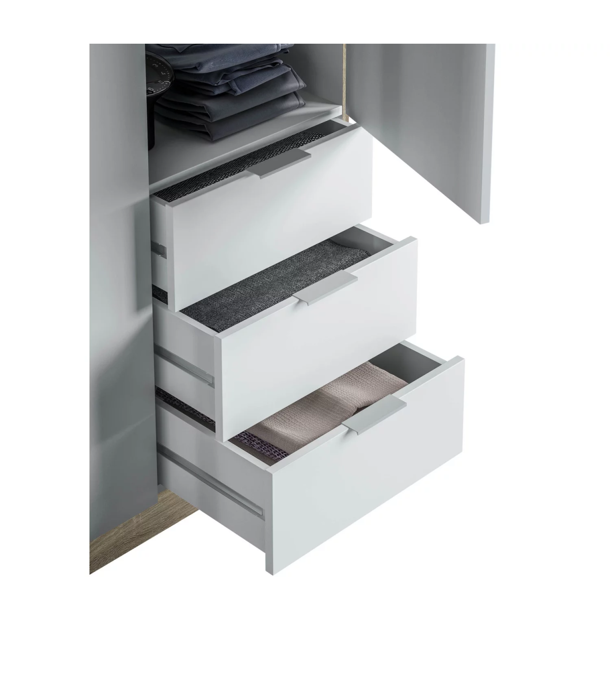Ce modèle est divisé à l'intérieur en deux parties par une planche centrale pour que vous puissiez organiser vos vêtements, une de ces parties est formée par un creux de 80 cm avec deux portes et l'autre partie est formée par une porte de 40 cm, des deux côtés il y a une barre de suspension à l'intérieur.