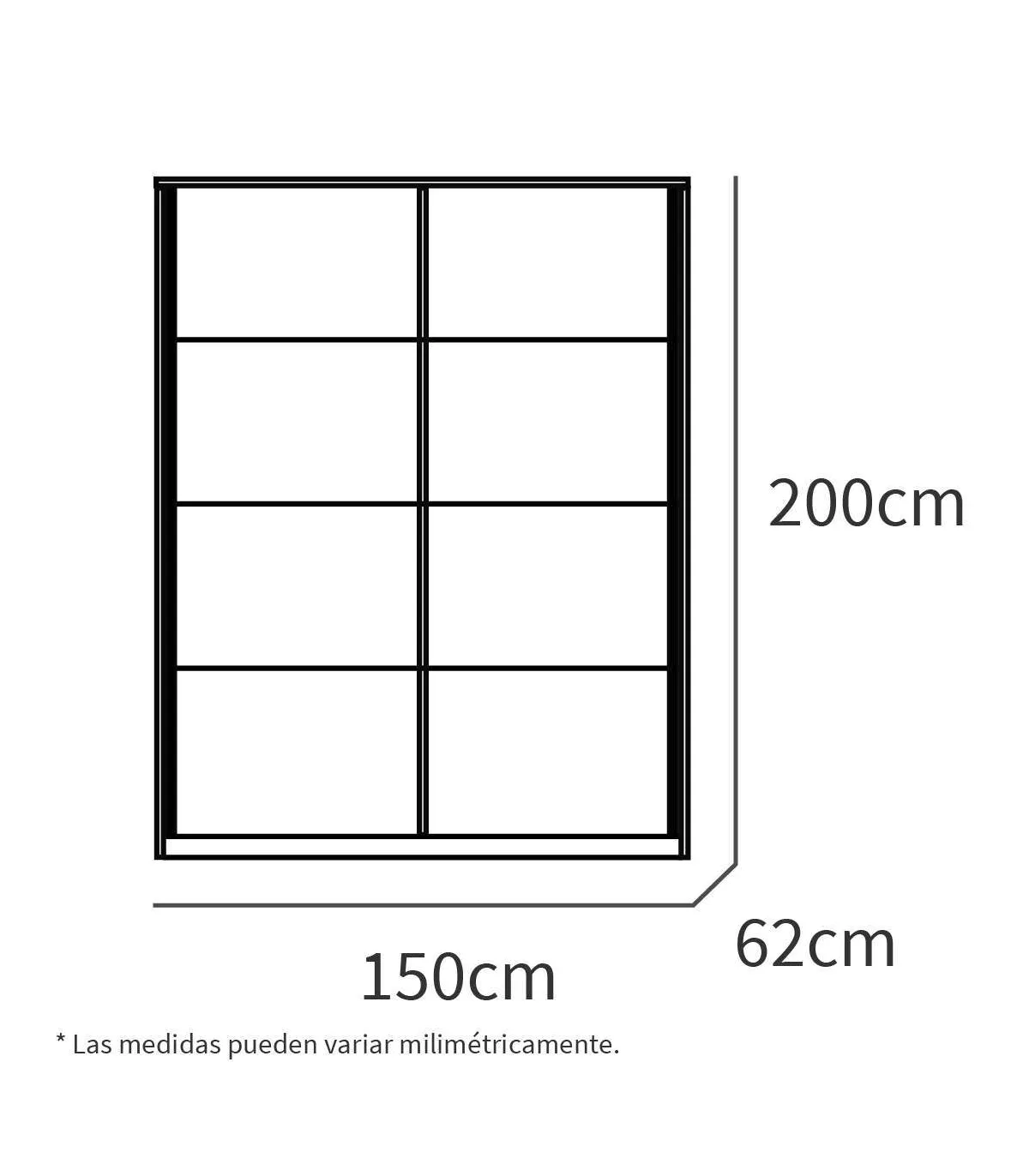 -Dimensions : 200 cm (hauteur) x 150 cm (largeur) x 62 cm (profondeur)