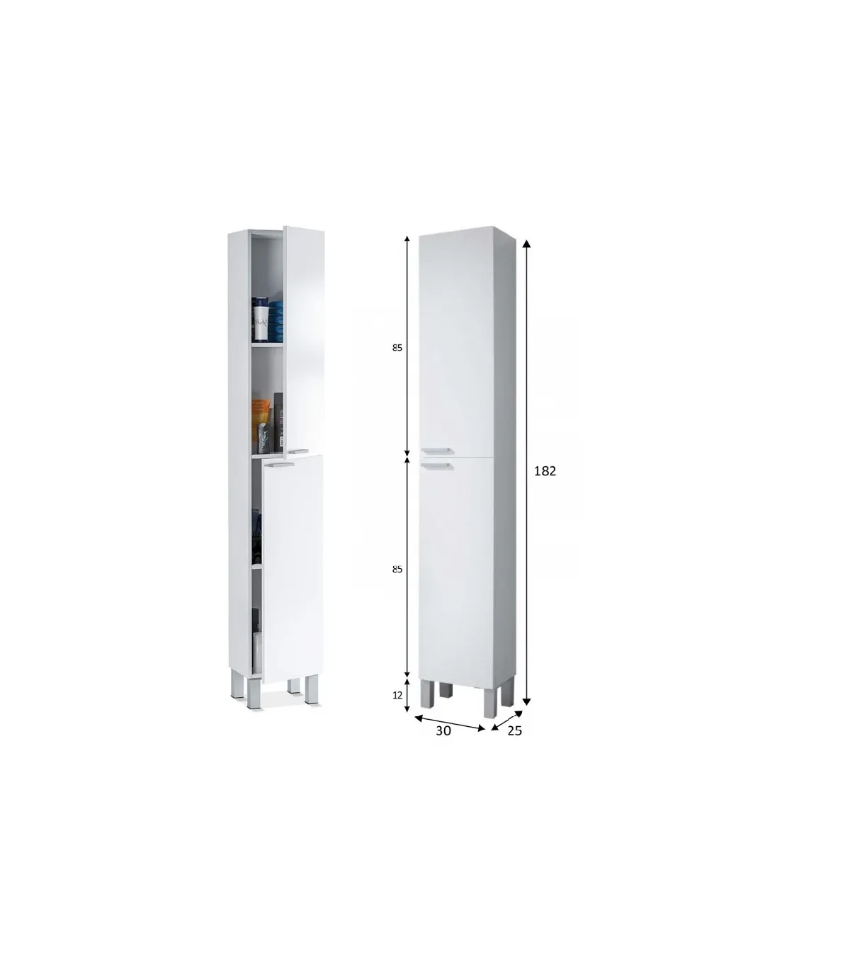 Colonne de salle de bains haute Kris avec 2 portes en finition blanc brillant 182 cm(hauteur)30 cm(largeur)25 cm(longueur)