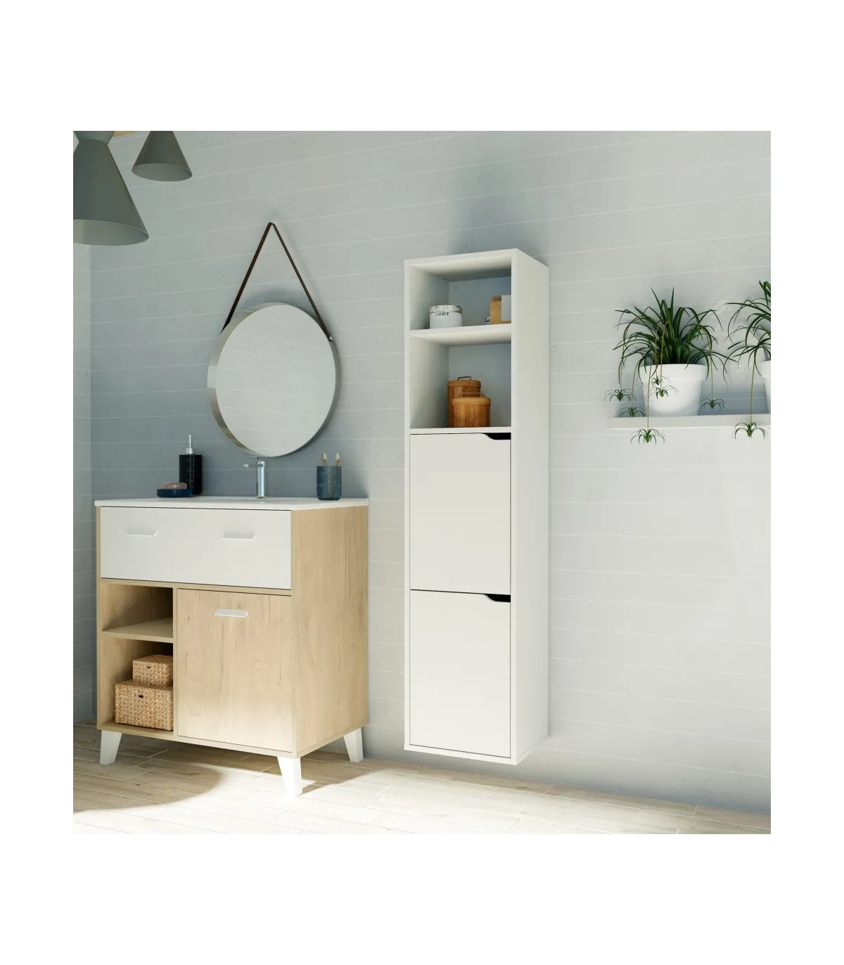 La columna Nadia es el mueble perfecto para ese espacio extra de almacenamiento que necesitas en el baño.